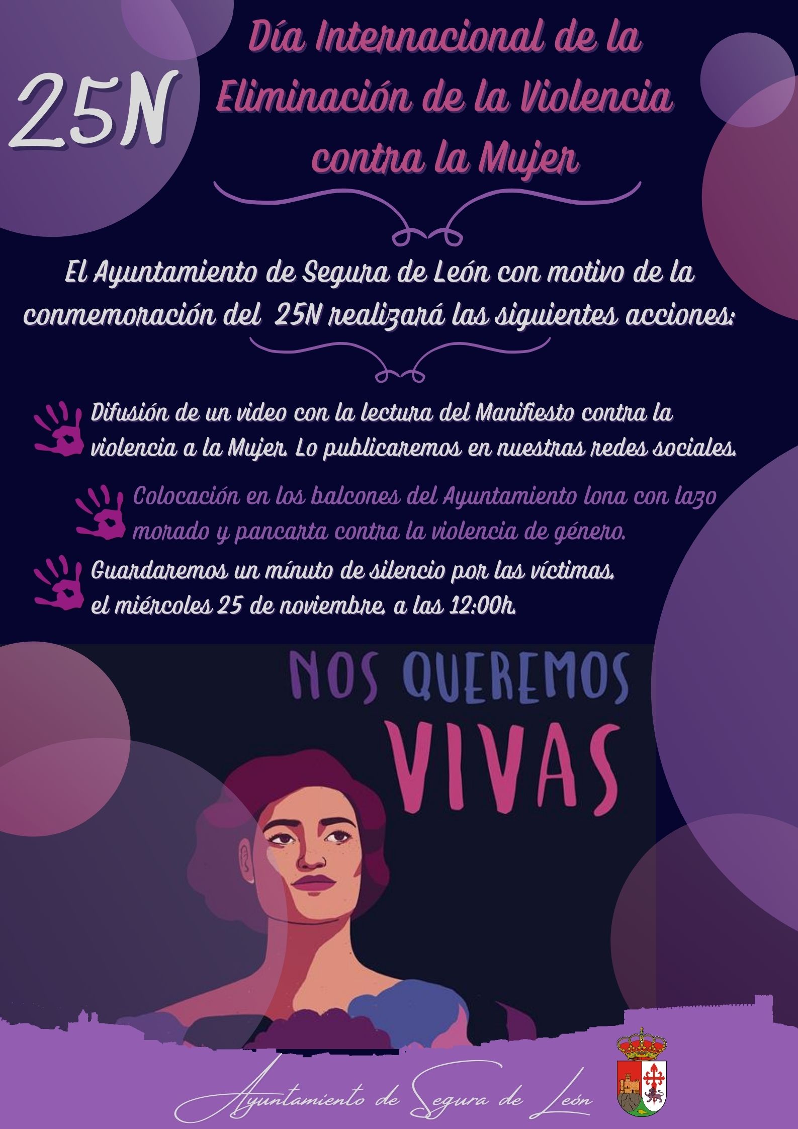 25N, Día Internacional de la Eliminación de la Violencia contra la Mujer2020-11-20 11:18:46DeportesPara conmemorar el 25N, Día Internacional de la Eliminación de la Violencia contra la Mujer el Ayuntamiento de Segura de León realizará las siguientes acciones: