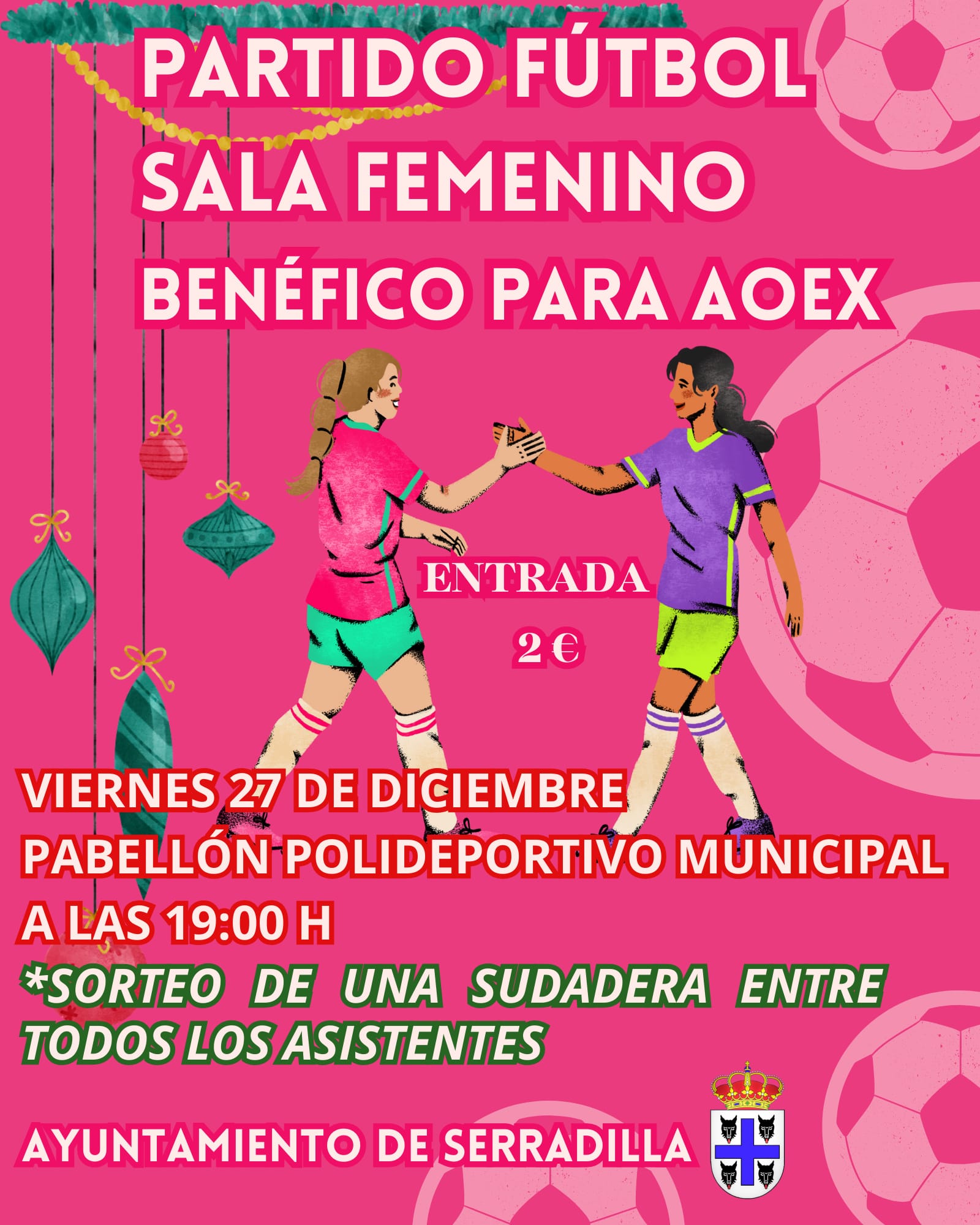 Hoy viernes 27 de diciembre a las 19:00h en el Pabellón Polideportivo municipal se celebrará un partido de fútbol sala femenino benéfico a favor de la AOEX.