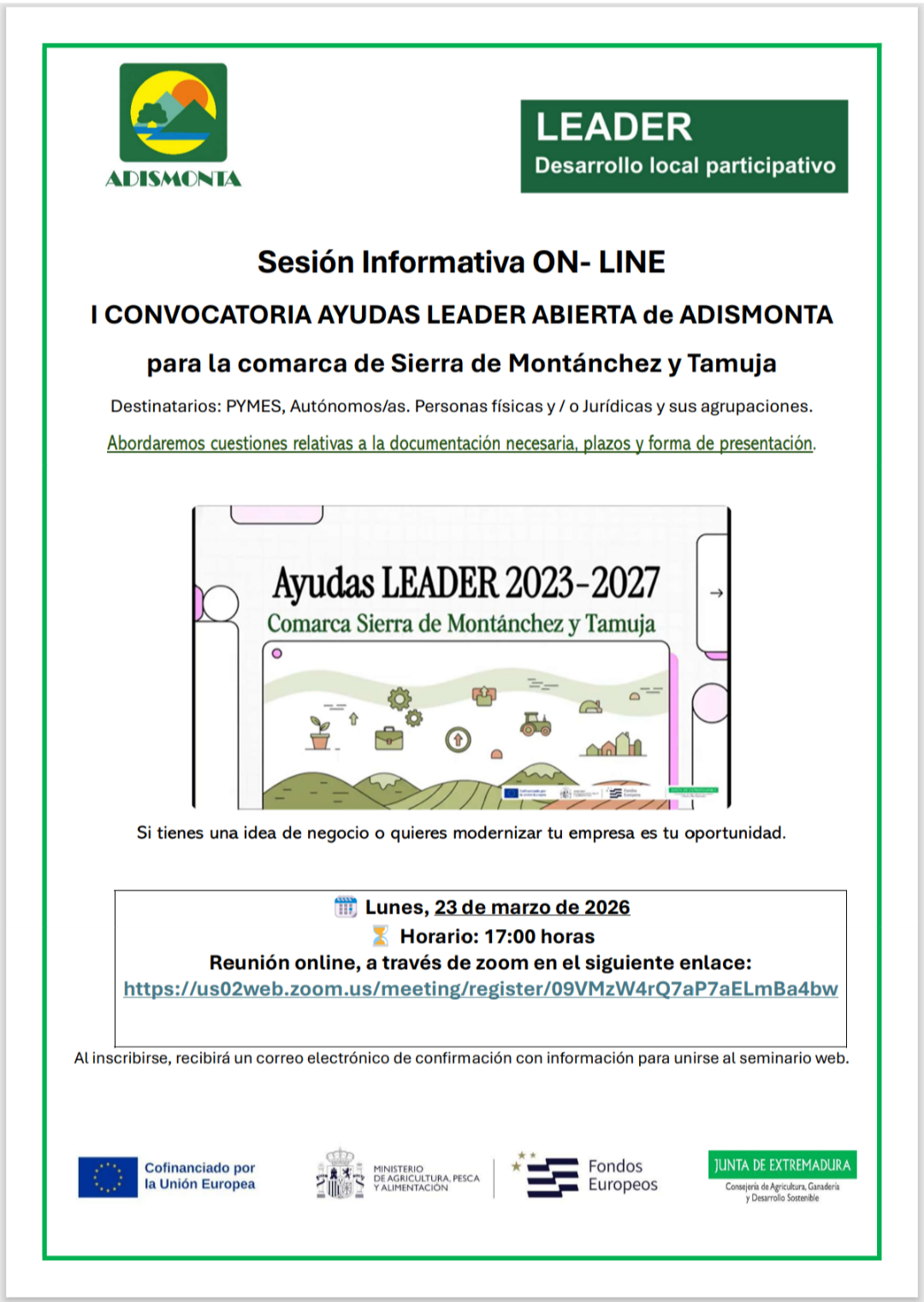 📢 SESIÓN INFORMATIVA ONLINE – AYUDAS LEADER ADISMONTA