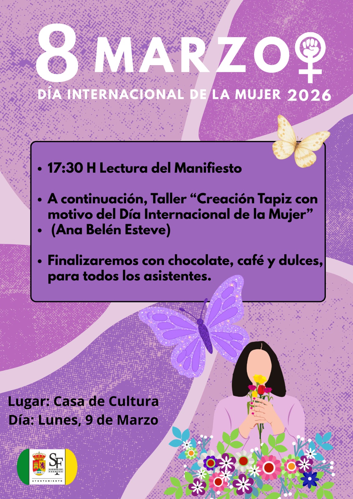 La jornada comenzará con la lectura del Manifiesto del 8 de Marzo y, a continuación, se llevará a cabo el taller “Creación de Tapiz con motivo del Día Internacional de la Mujer”, impartido por Ana Belén Esteve.