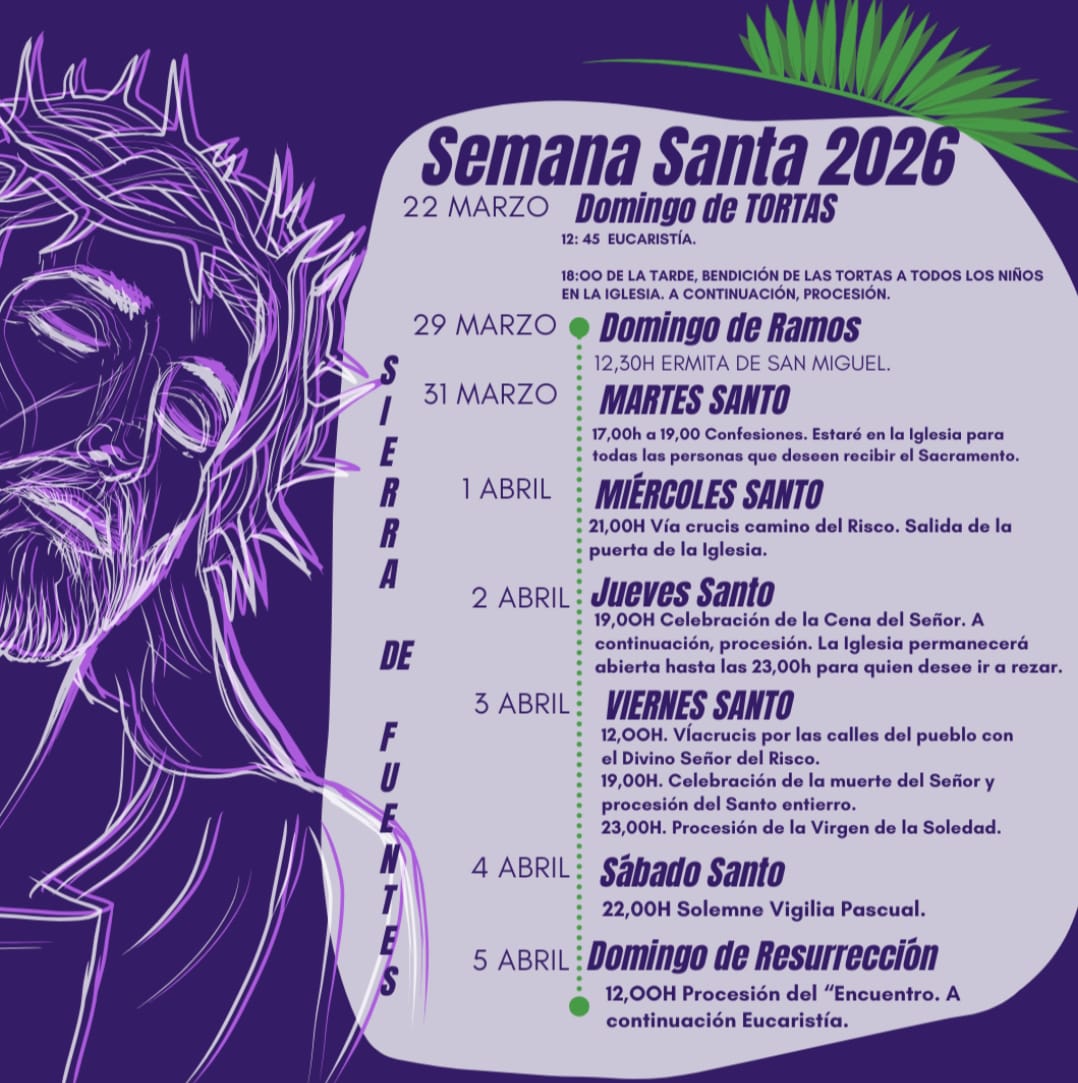 Para el buen desarrollo de las procesiones de Semana Santa 2026, que recorrerán diferentes calles de nuestro pueblo, se ruega a los vecinos y vecinas no estacionar sus vehículos, en los horarios que se indican a continuación: