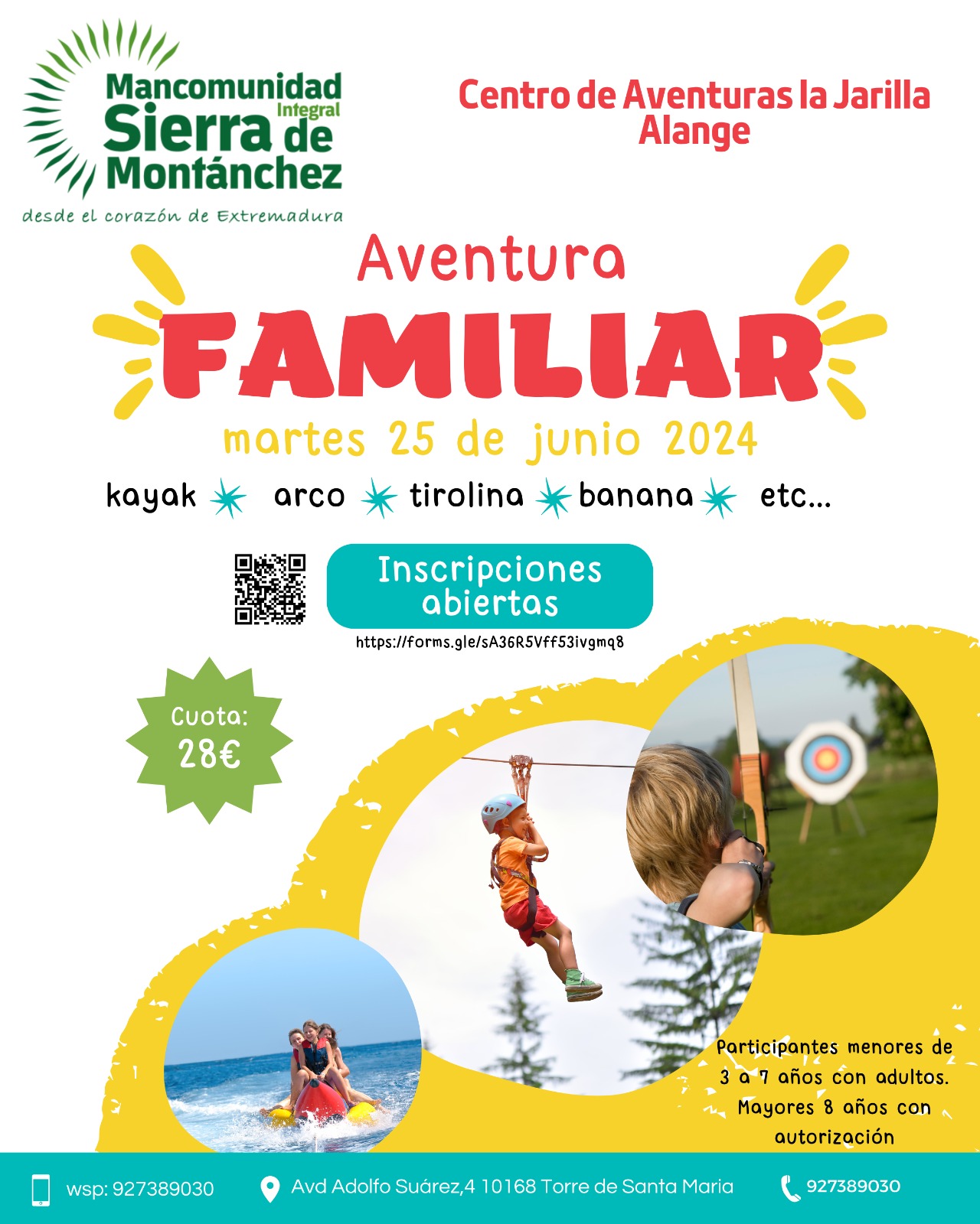 Os compartimos toda la información sobre la excursión al 'Centro de Actividades y de Aventura La Jarilla' organizada por la Mancomunidad para todas las familias de la comarca, con motivo de la finalización del curso escolar.