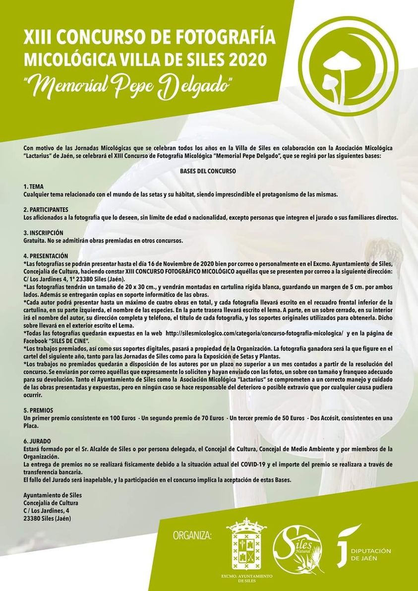 XIII CONCURSO DE FOTOGRAFÍA MICOLÓGICA "VILLA DE SILES" 2020. "MEMORIAL PEPE DELGADO".