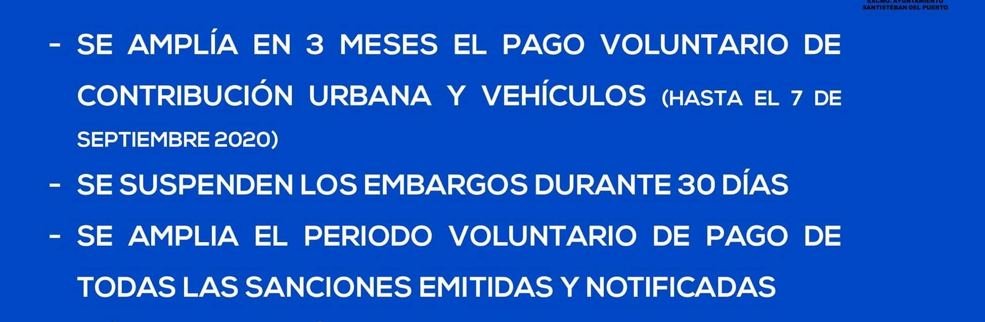 APLAZAMIENTO DE IMPUESTOS Con motivo del Real Decreto 463/2020, de 14 de marzo, declara el estado de alarma por COVID 19, se establecen una serie de medidas de tipo tributario, en lo que respecta a impuestos municipales, se instó al SPGR, la adopción de medidas para ayudar a la ciudadanía y los contribuyentes, destacar las siguientes: PRIMERO.- Tanto el Impuesto sobre Vehículos de Tracción Mecánica como el Impuesto sobre Bienes Inmuebles de Naturaleza Urbana e Impuesto de Bienes Inmuebles de(...)