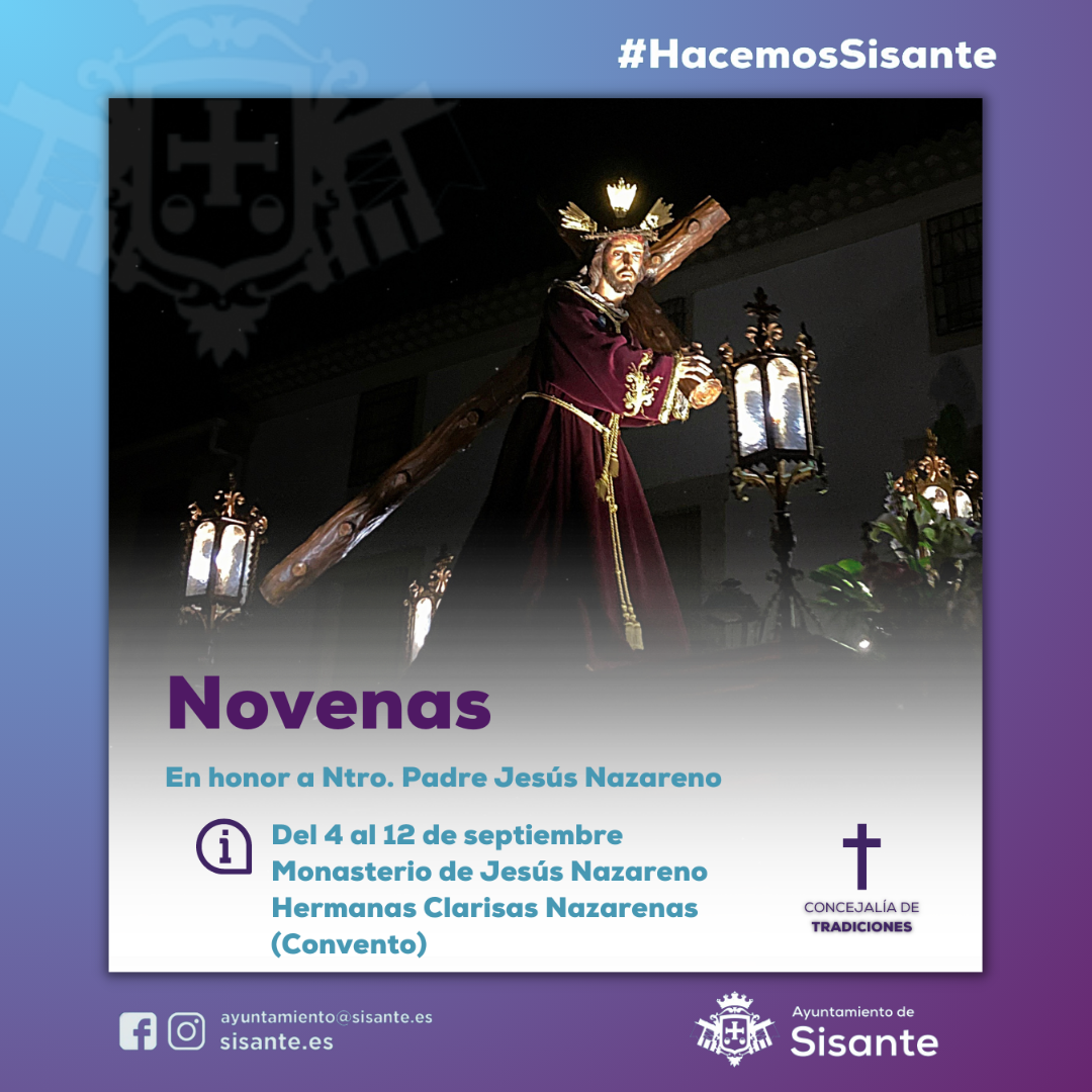 βοΈ πππππππ ππ πππππ π ππππβ§ πππππ ππππΜπ ππππππππ2023-08-28 10:00:00Cultura y TradicionesποΈ La ConcejalΓa de Tradiciones del Ayuntamiento de Sisante comunica los novenarios en previos a la Feria en honor en Ntro. Padre JesΓΊs Nazareno.