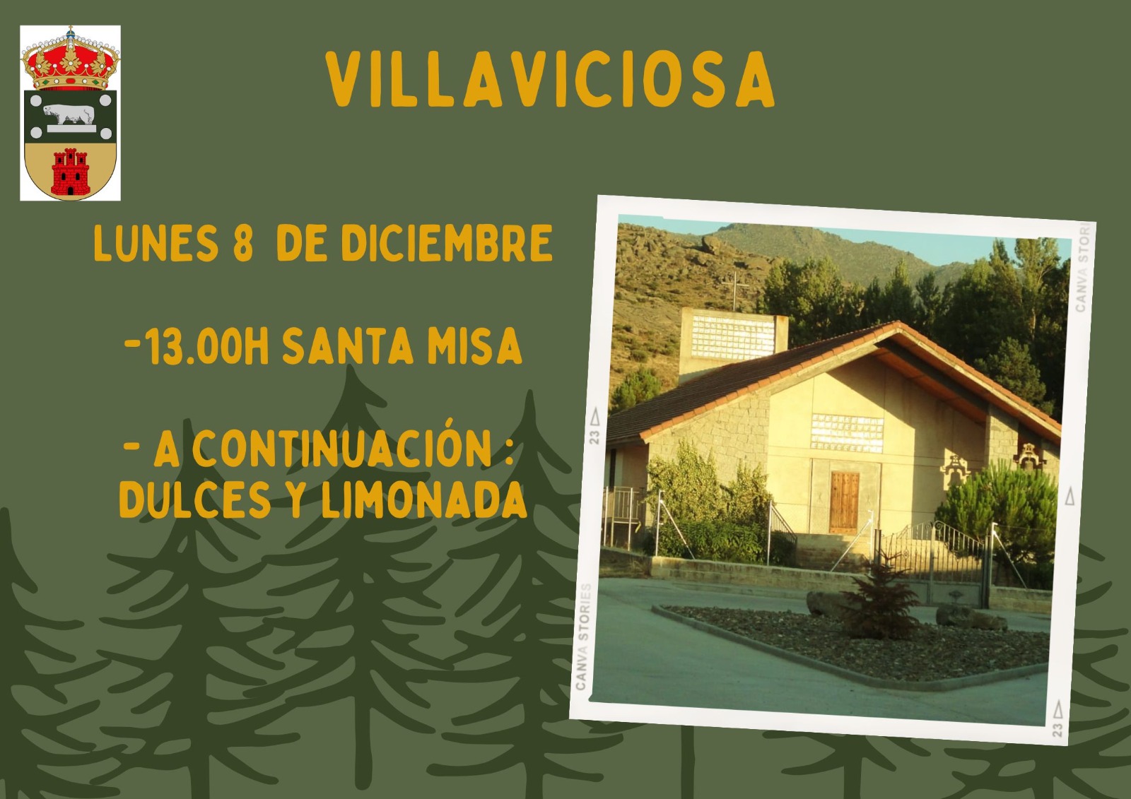 El Lunes 8 de Diciembre en Villaviciosa se celebrará a las 13.00 h Santa Misa y a continuación habrá dulces y limonada.
