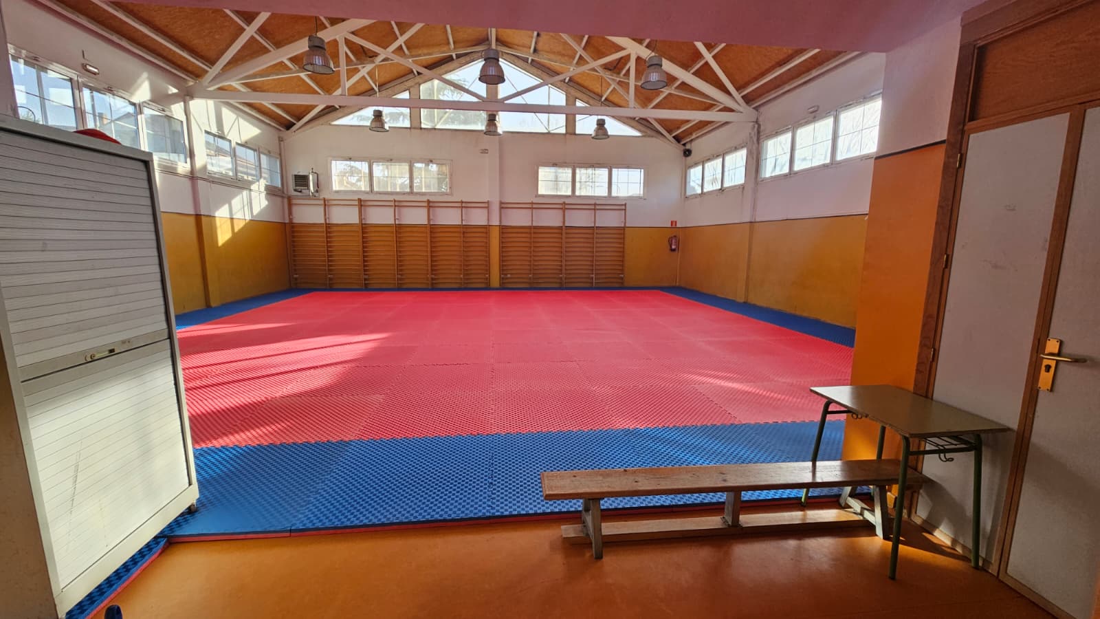 Ahora, el tatami ocupa todo el espacio del gimnasio y queda instalado de forma fija, evitando las molestias de montaje y desmontaje tras cada actividad y liberando el espacio que antes se utilizaba para guardarlo.