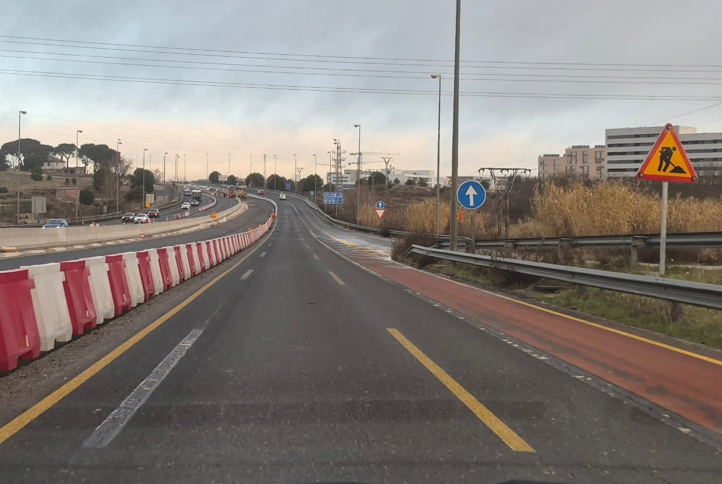 Estrechamiento o cortes del carril derecho en el tramo 1, sentido Madrid (decreciente), por trabajos de fresado y aglomerado.