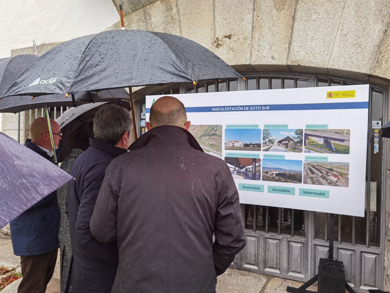 Esta mañana, la alcaldesa de Soto del Real, Noelia Barrado, junto al concejal de Movilidad Sostenible, Javier Fernández, y la concejala de Desarrollo Local, Sara Gutiérrez, han asistido a la presentación del proyecto de la futura estación de Cercanías Soto Sur.