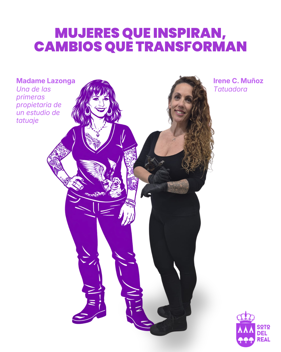 Hoy destacamos a Irene, tatuadora, una profesión creativa que durante mucho tiempo estuvo ocupada principalmente por hombres. Su referente es Madame Lazonga, una de las primeras mujeres en abrir su propio estudio de tatuaje en Estados Unidos y pionera en visibilizar la presencia femenina en este ámbito.