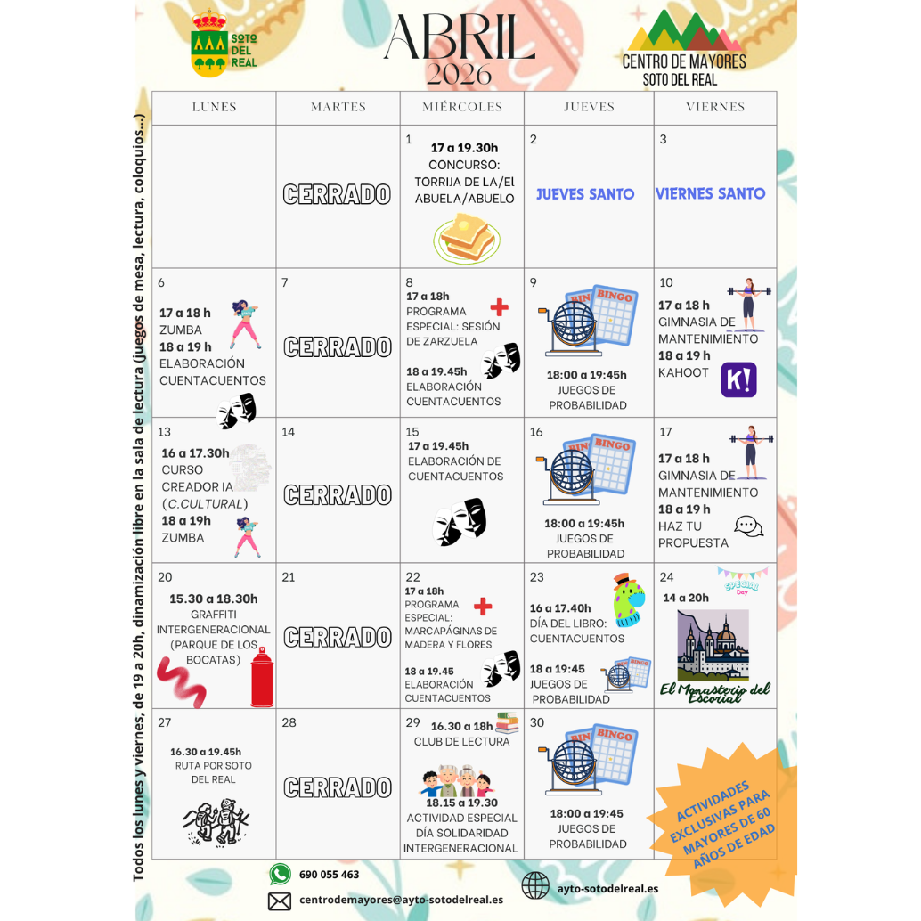 Programación de abril en el Centro de Mayores