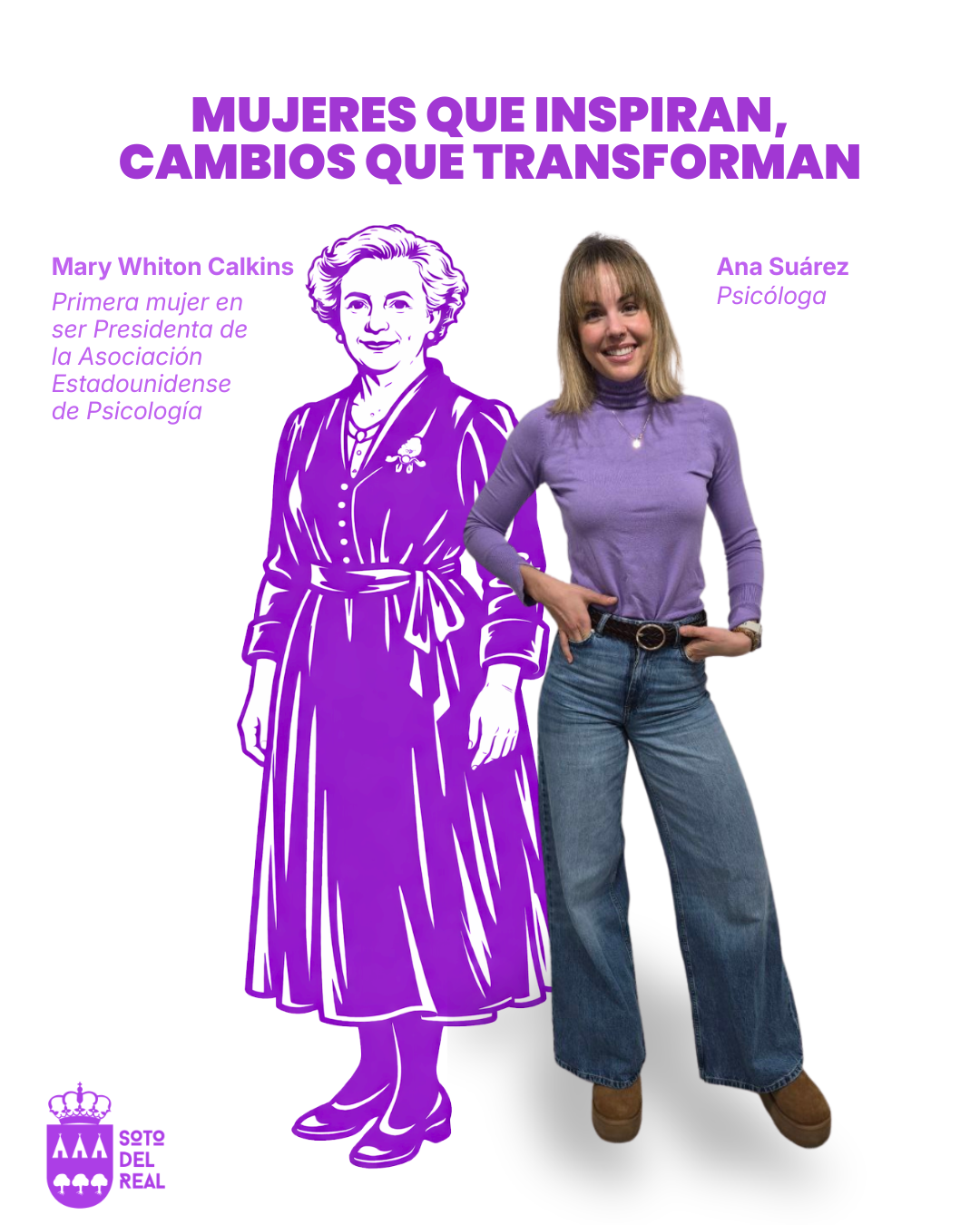 Cerramos la campaña destacando a Ana Suárez, psicóloga. Su referente es Mary Whiton Calkins, primera mujer en presidir la Asociación Estadounidense de Psicología y una de las pioneras en abrir camino a las mujeres en esta disciplina.