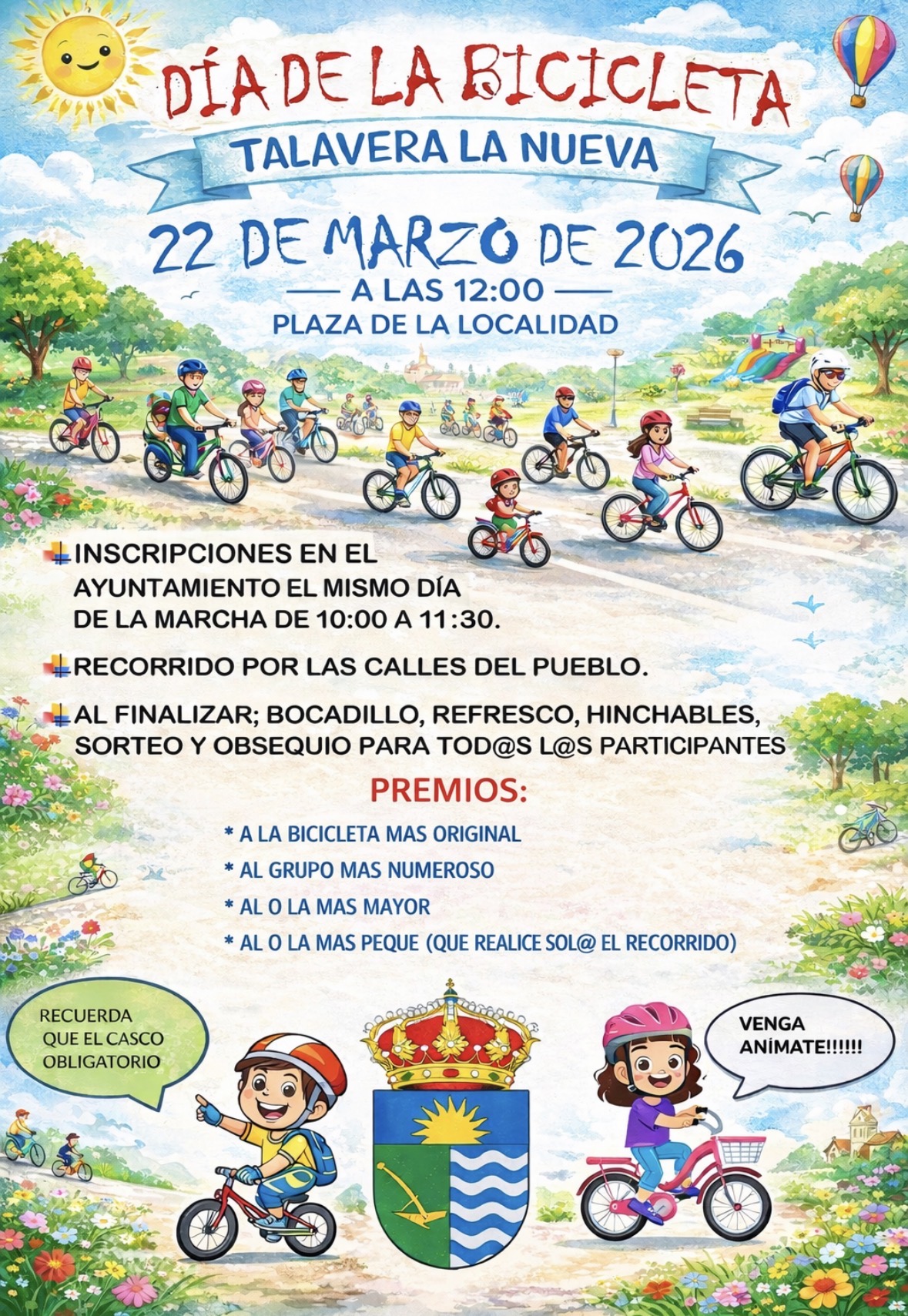 Os recordamos que el próximo domingo 22 de marzo de 2026 celebramos el DIA DE LA BICICLETA, a las 12:00 horas en la plaza de la localidad.
