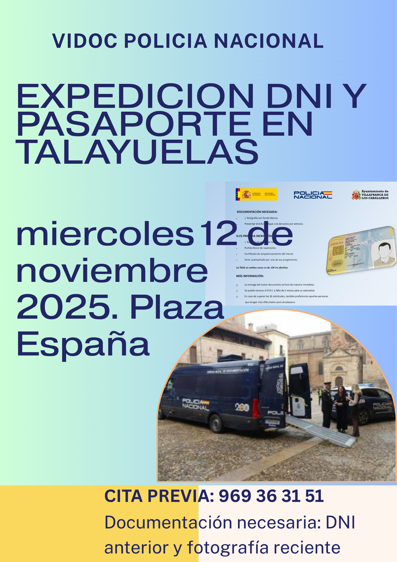 🪪 Expedición y Renovación de DNI y Pasaporte en Talayuelas 🚓 El Vehículo Integral de Documentación (VIDOC) de la Policía Nacional se desplaza a Talayuelas