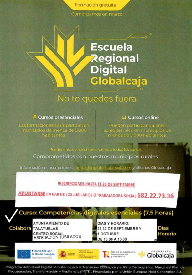 SE INFORMA QUE EL DIA 21 Y 22 DE JULIO DE 9.45 A 13.30 SE DARA UN CURSO SOBRE COMPETENCIAS DIGITALES ESENCIALES. REQUISITO ESTAR EMPADRONADO.