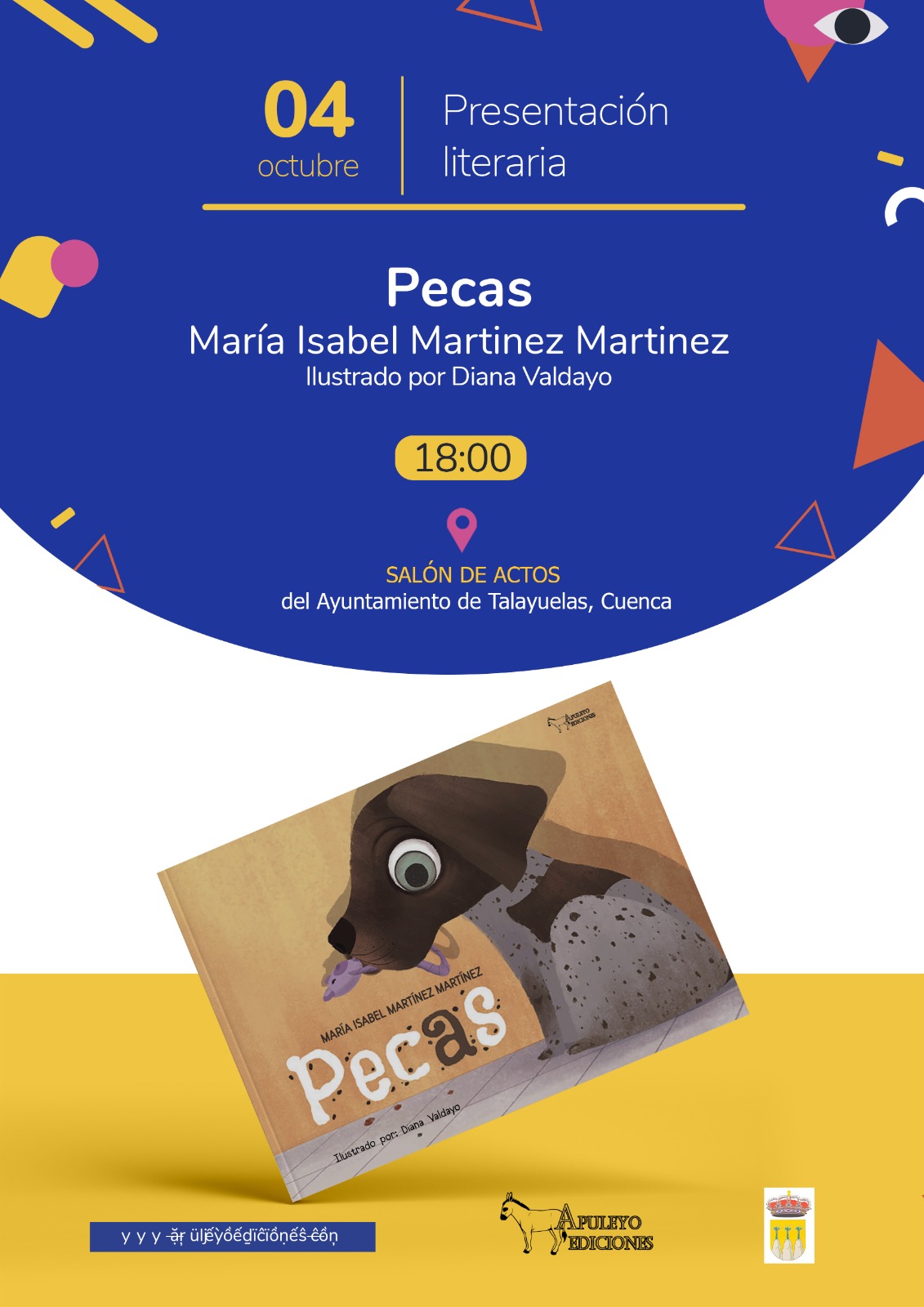 Se comunica, que el viernes cuatro de octubre, a las seis de la tarde, en el salón de actos del Ayuntamiento, tendrá lugar la presentación del cuento "Pecas", por su autora María Isabel Martínez Martínez, para todo el que desee asistir.