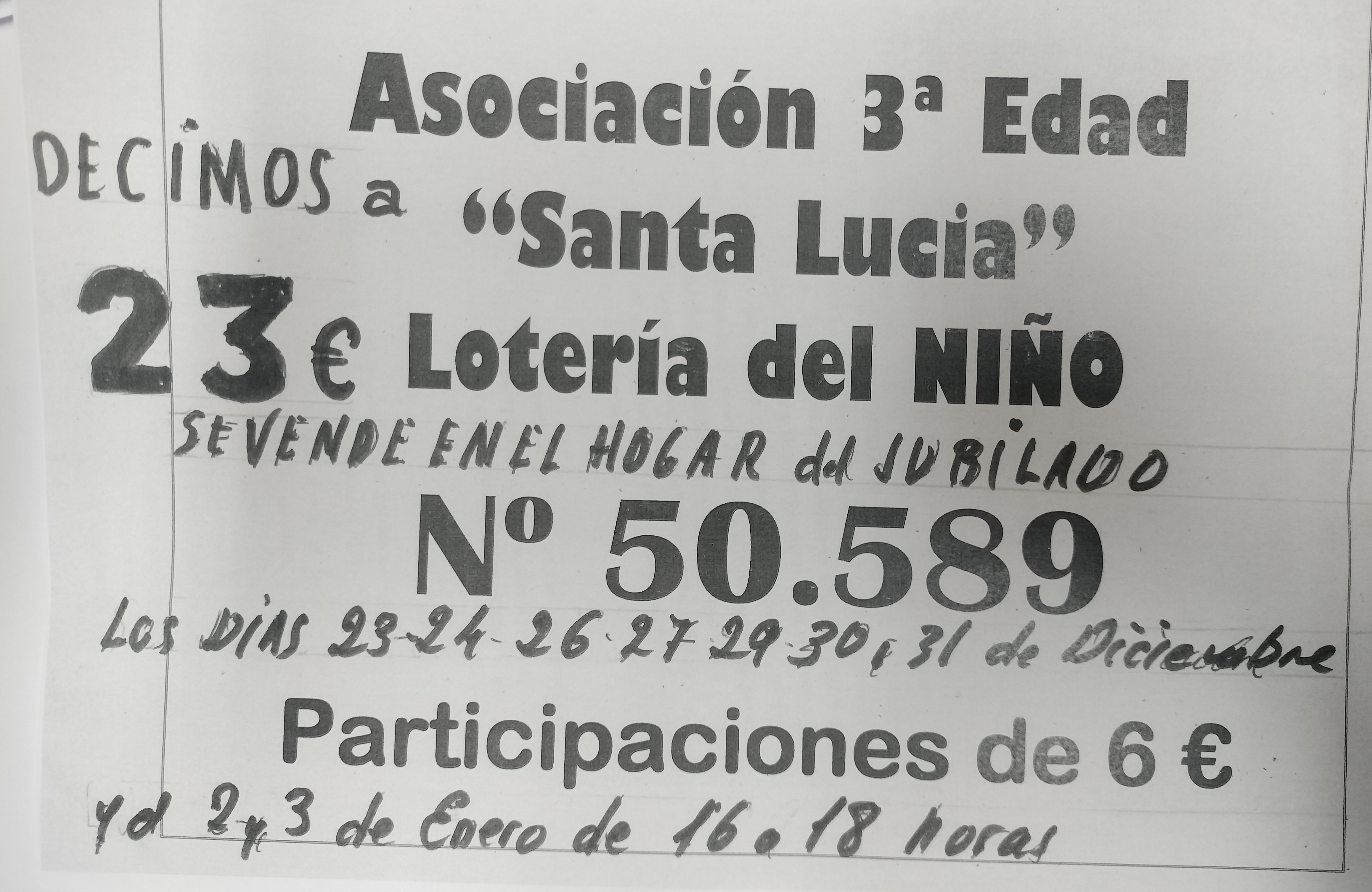 Información lotería Amas de Casa Virgen de Gracia.