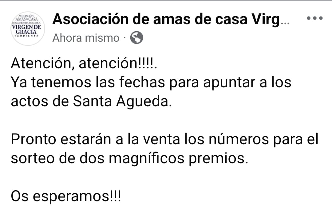 Las Amas de Casa de Almuniente vendrán mañana, día 8, a las 16:00 h, al Centro Cívico para pagar la lotería. -