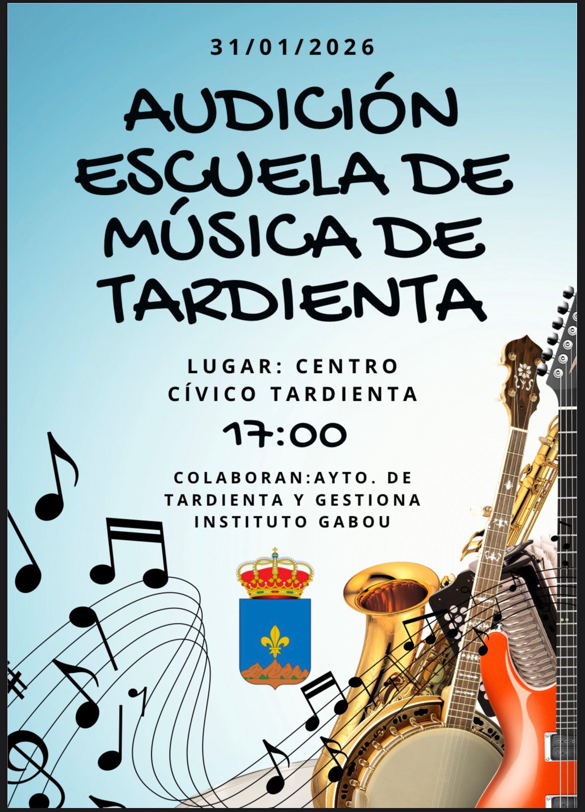 Contaremos con la participación de alumnos y profesores de la Escuela de Música de La Puebla de Alfindén, junto al equipo de la Escuela de Música de Tardienta 🎶👩🎓👨🏫
