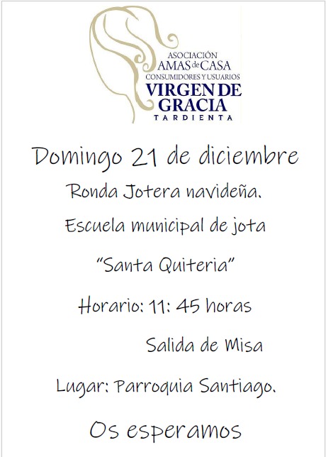 Se informa que la misa del domingo 21 de diciembre se celebrará a las 11:00 horas de la mañana. -