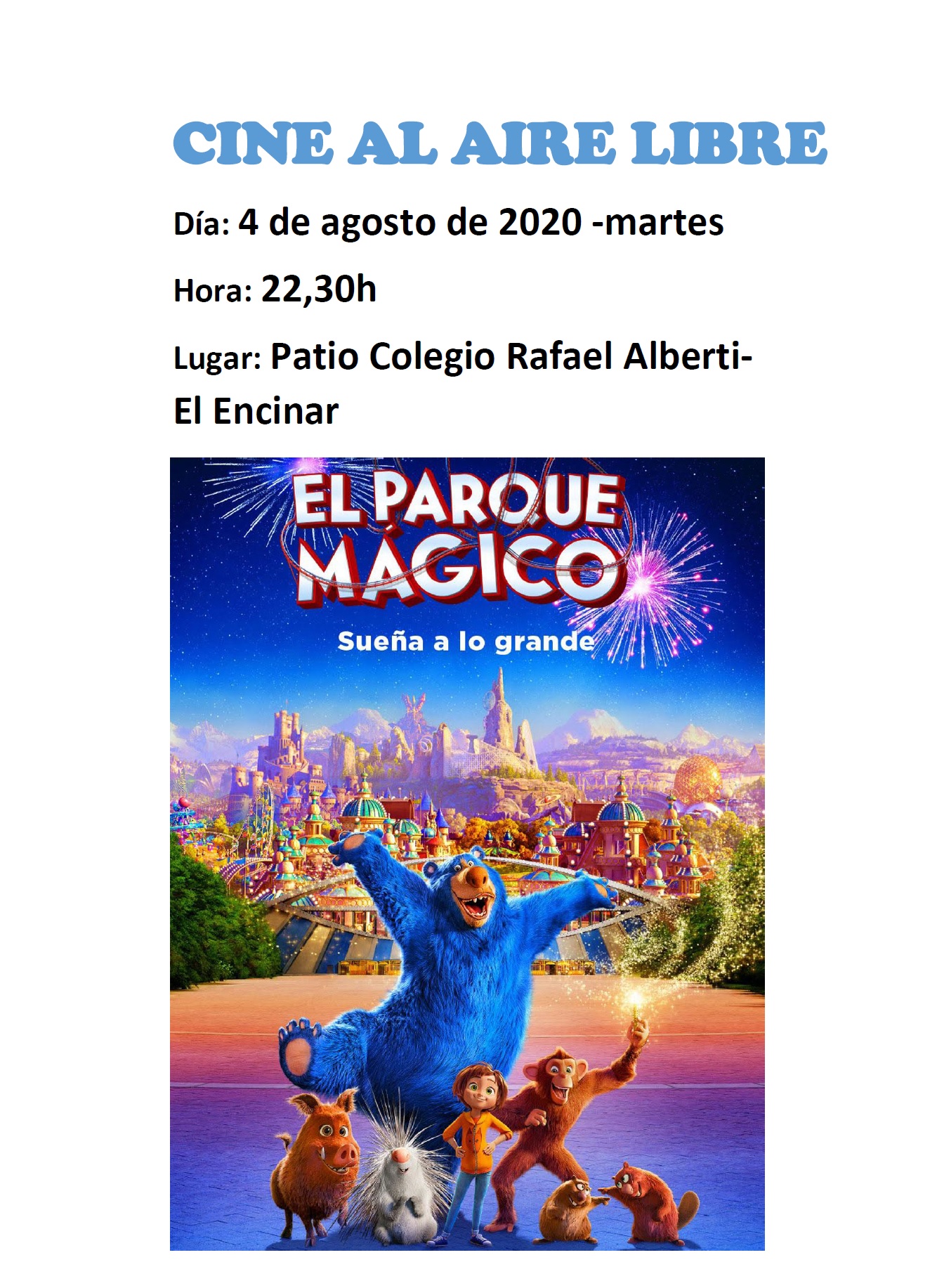 -Día 4 de agosto- martes - CINE AL AIRE LIBRE: “El parque mágico, sueña a lo