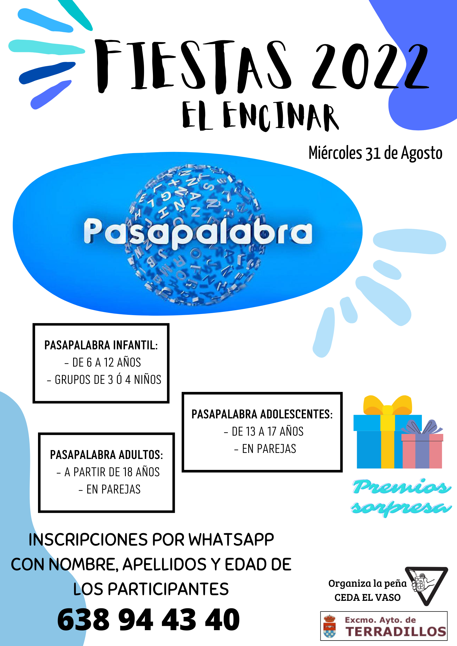 PASAPALABRA EN LAS PROXIMAS FIESTAS DE EL ENCINAR