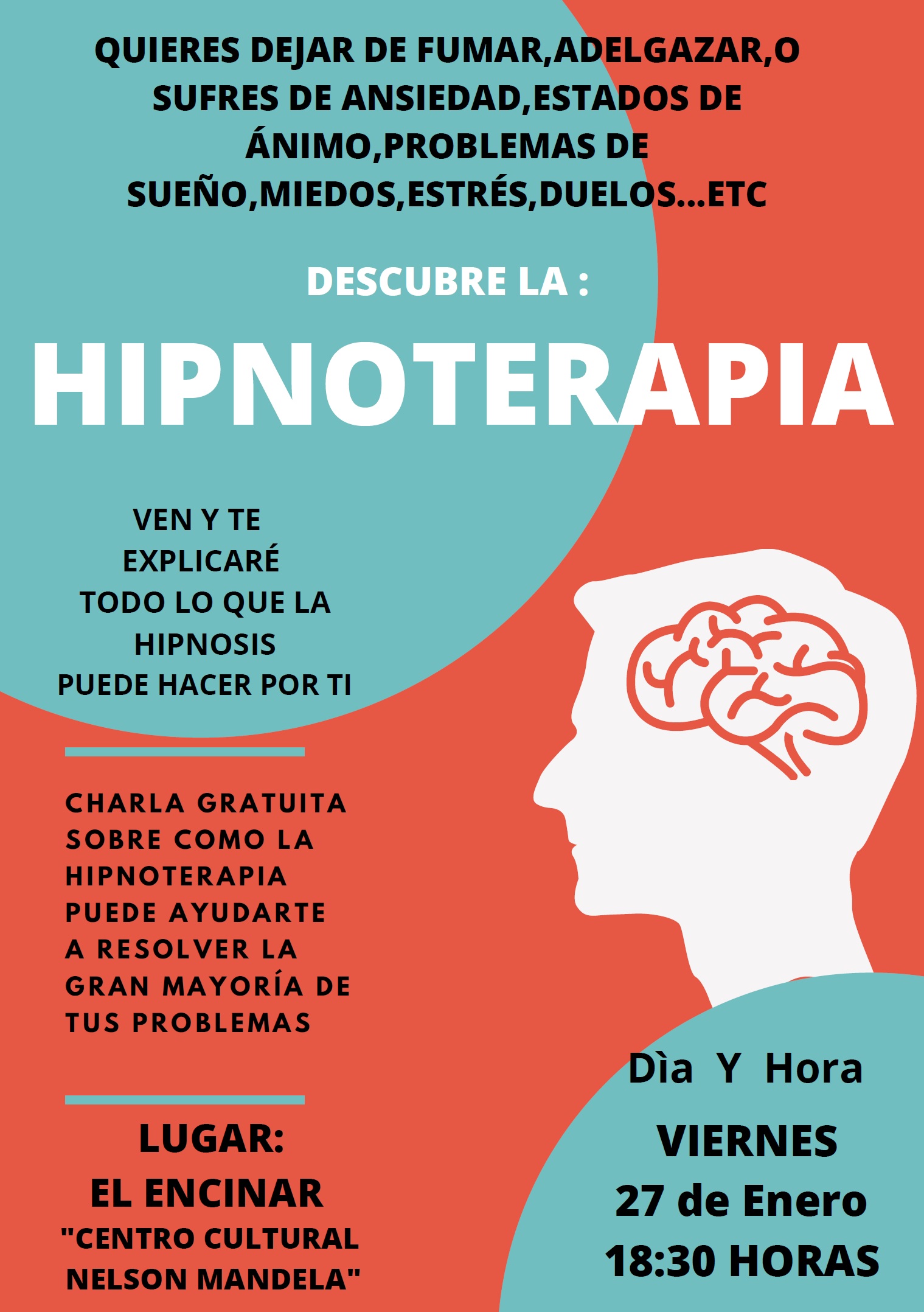 CHARLA INFORMATIVA SOBRE LA HIPNOTERAPIA2023-01-17 10:50:41CulturaQuieres dejar de fumar, adelgazar, o sufres de ansiedad, estados de ánimo, problemas de sueño, miedos, estrés, duelos...etc