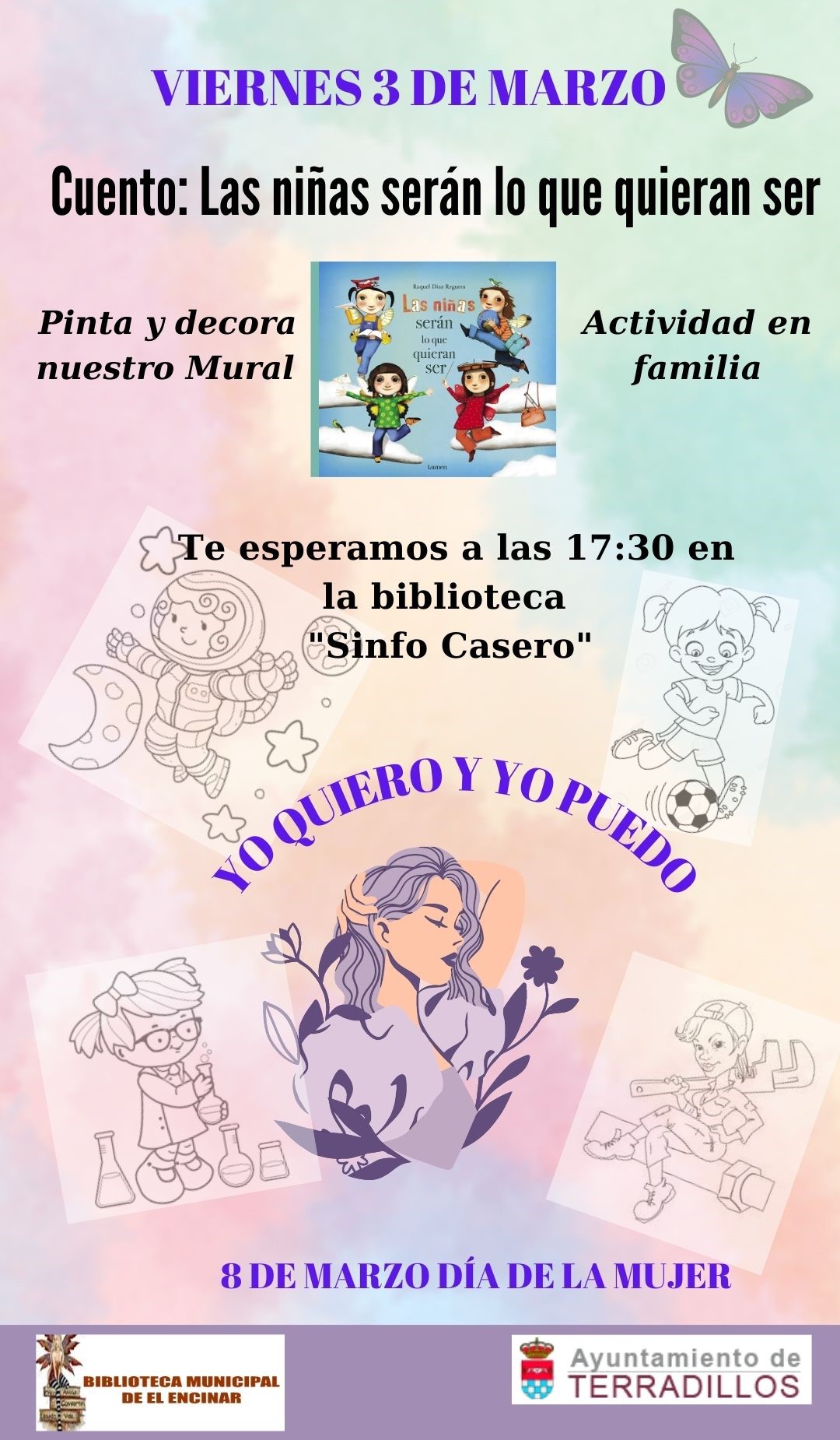 1- A las 17.30 cuentacuentos " Las niñas serán lo que quieran ser"