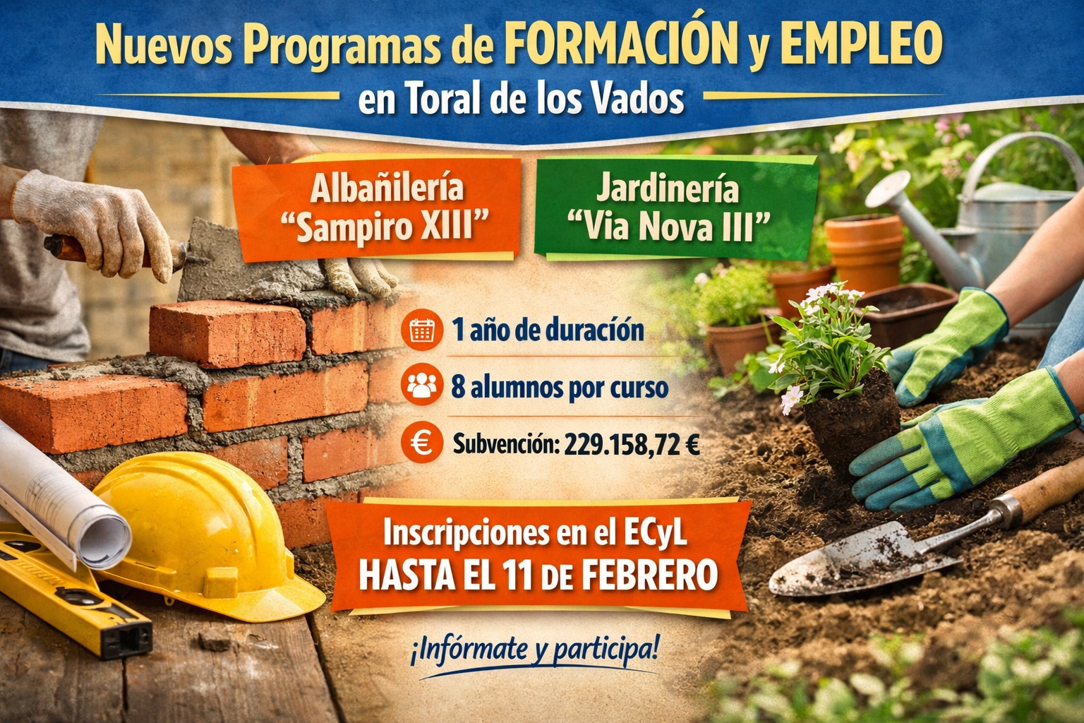 NUEVOS PROGRAMAS MIXTOS DE FORMACIÓN Y EMPLEO DISPONIBLES EN TORAL DE LOS VADOS
