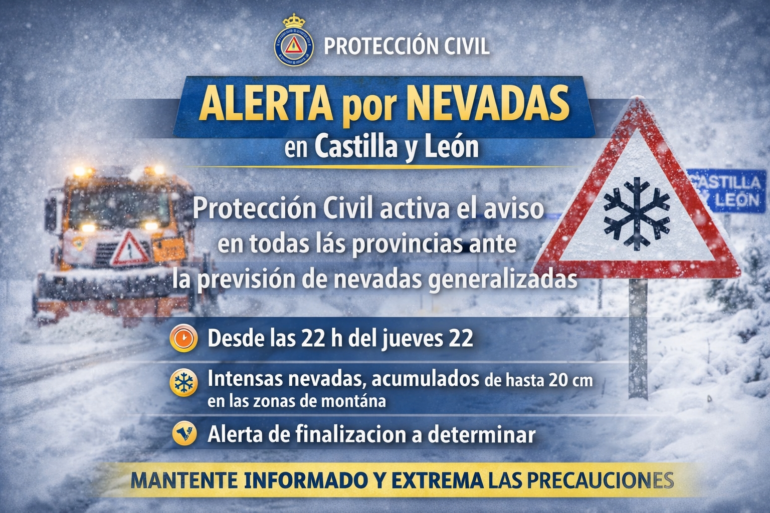 PROTECCIÓN CIVIL ACTIVA LA ALERTA POR NEVADAS, LLUVIA Y VIENTO EN CASTILLA Y LEÓN