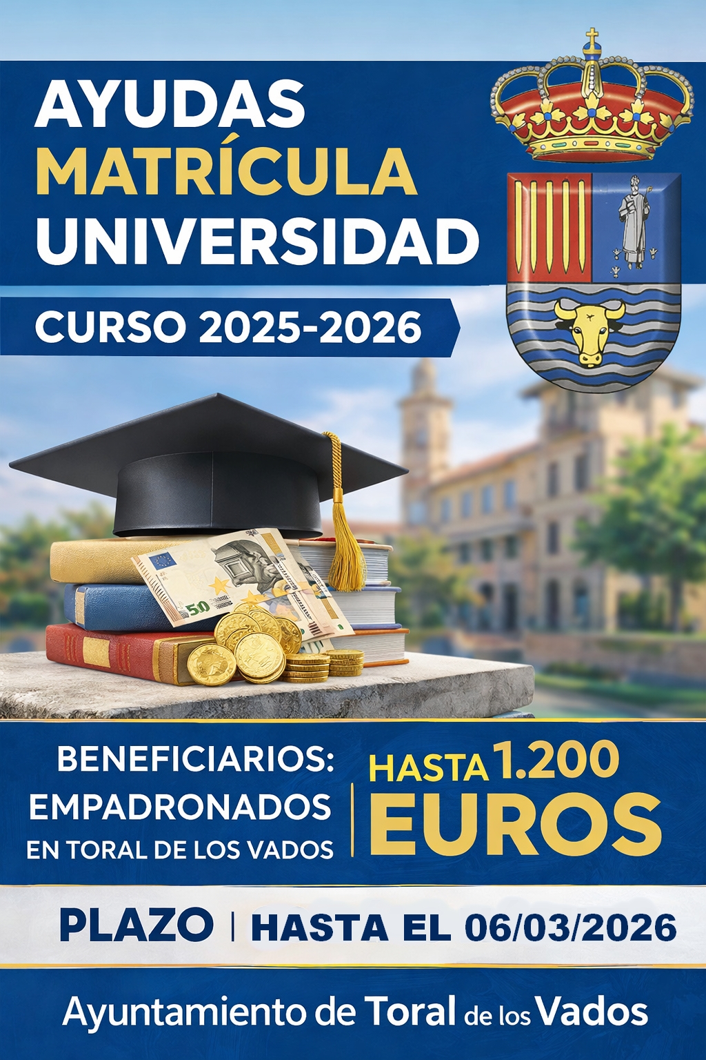 AYUDAS PARA LA MATRICULA DE ESTUDIOS UNIVERSITARIOS CURSO ESCOLAR 2025-2026 DEL AYUNTAMIENTO DE TORAL DE LOS VADOS