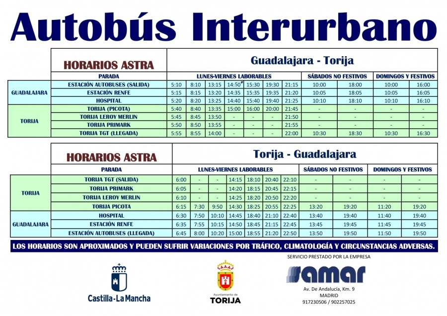Informamos que a partir de hoy día 2 Octubre, el autobús que sale de Guadalajara de la estación de Autobuses a las 14:30, modifica su horario de salida hasta las 14:50, para adaptarlo a los horarios de los estudiantes.