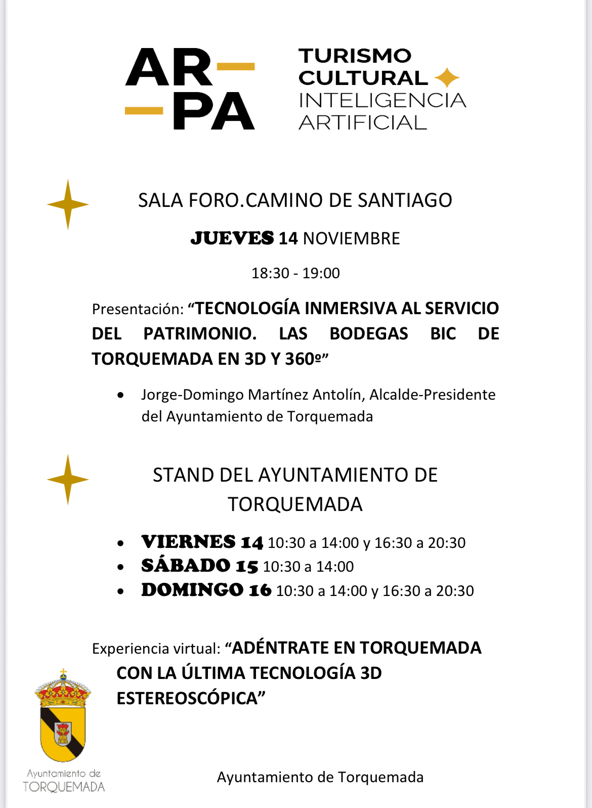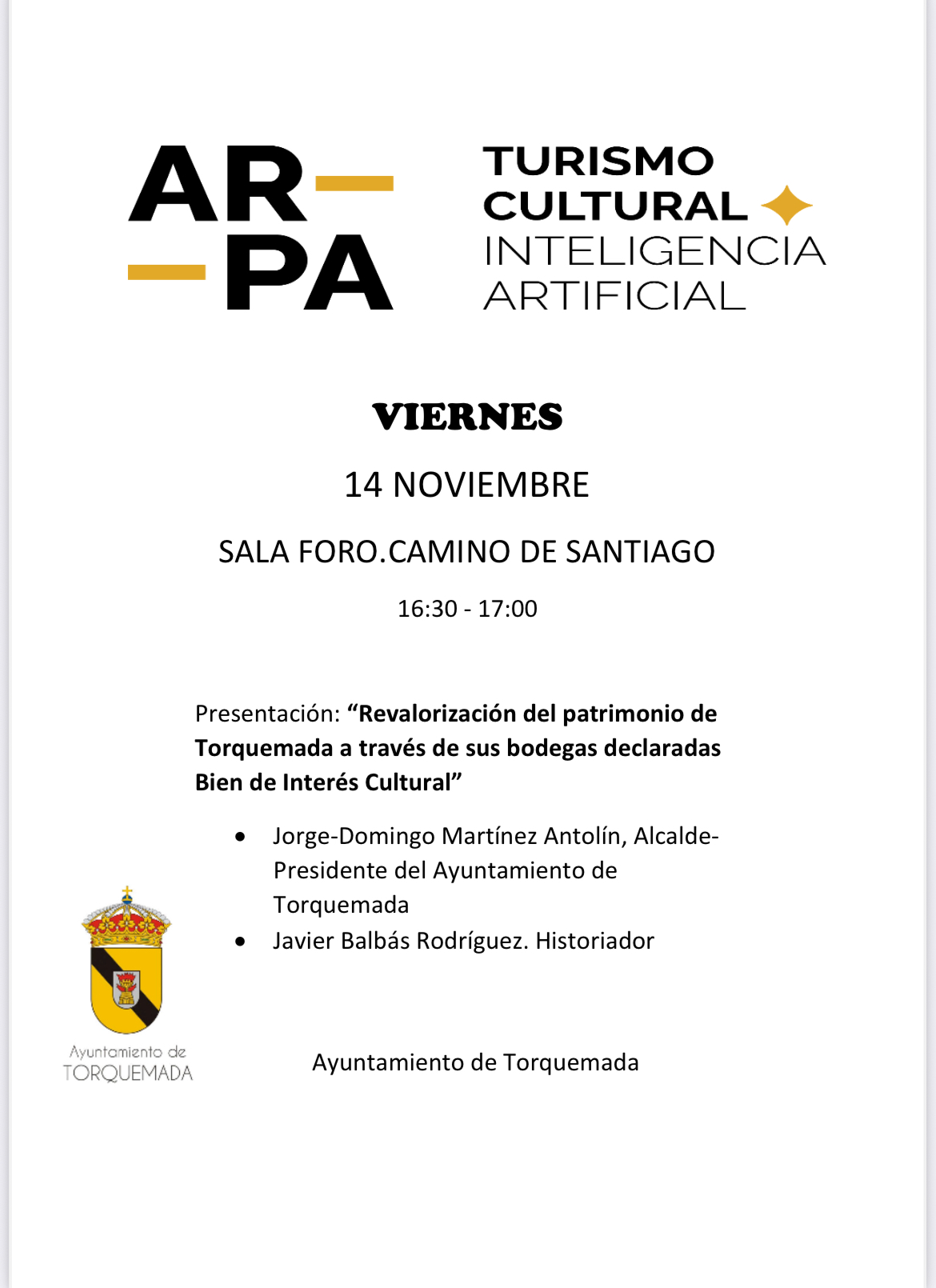 El Ayuntamiento de Torquemada mostrará en exclusiva su compromiso con la conservación y promoción del patrimonio de sus barrios de bodegas en AR-PA Turismo Cultural 2025, la feria de Patrimonio Cultural más prestigiosa de Castilla y León. Esta edición, dedicada a la temática “Inteligencia Artificial y Patrimonio Cultural”, reunirá a los principales referentes del sector en un espacio único de innovación y diálogo al que estás invitado. El Ayuntamiento compartirá sus nuevos proyectos d(...)