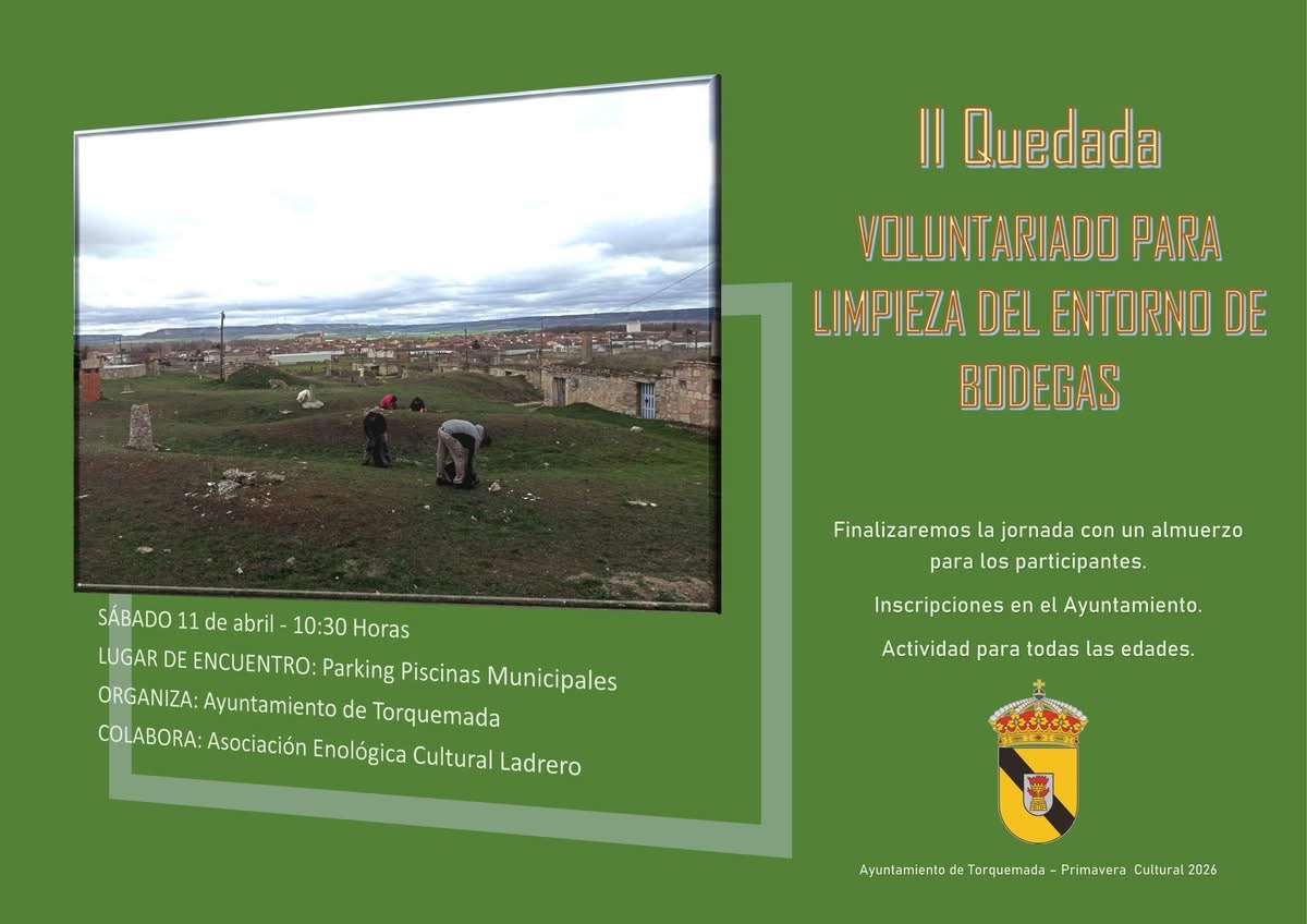 📢 El Ayuntamiento os invita a participar en una quedada de voluntariado para la limpieza del entorno de las bodegas.