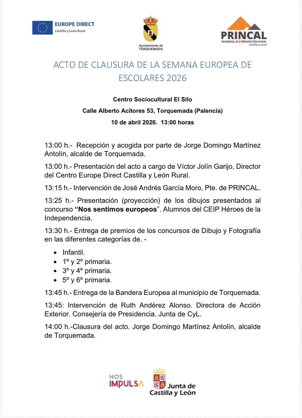 📢 El acto de clausura de la Semana Europea de Escolares 2026 se celebrará este viernes, 10 de abril de 2026, a las 13:00 h en el Centro Sociocultural El Silo.