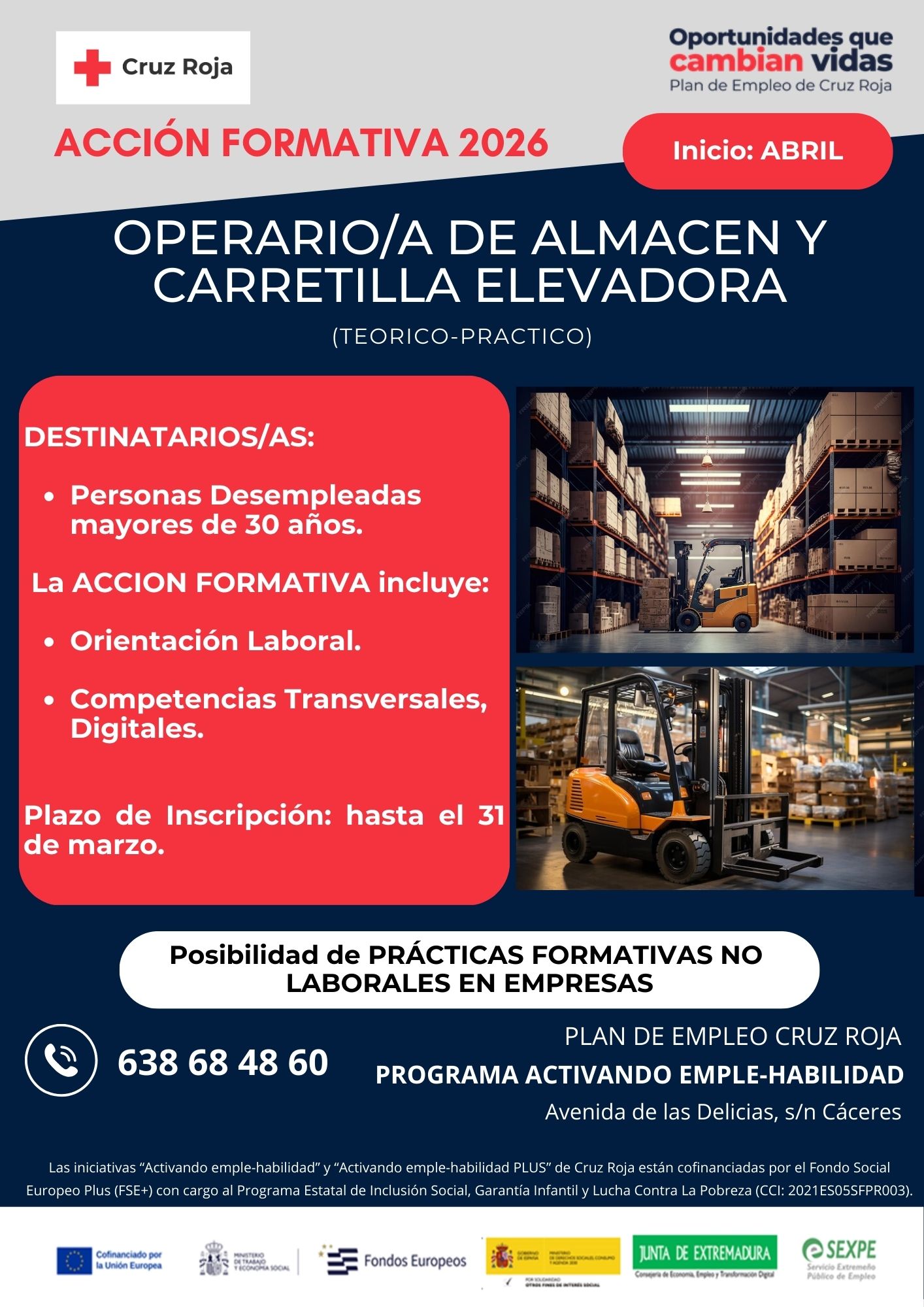 Desde el Programa Activando Emple-Habilidad de Cruz Roja Española Cáceres financiado por el Fondo Social Europeo Plus, SEXPE e IRPF, lanzan esta Acción Formativa: