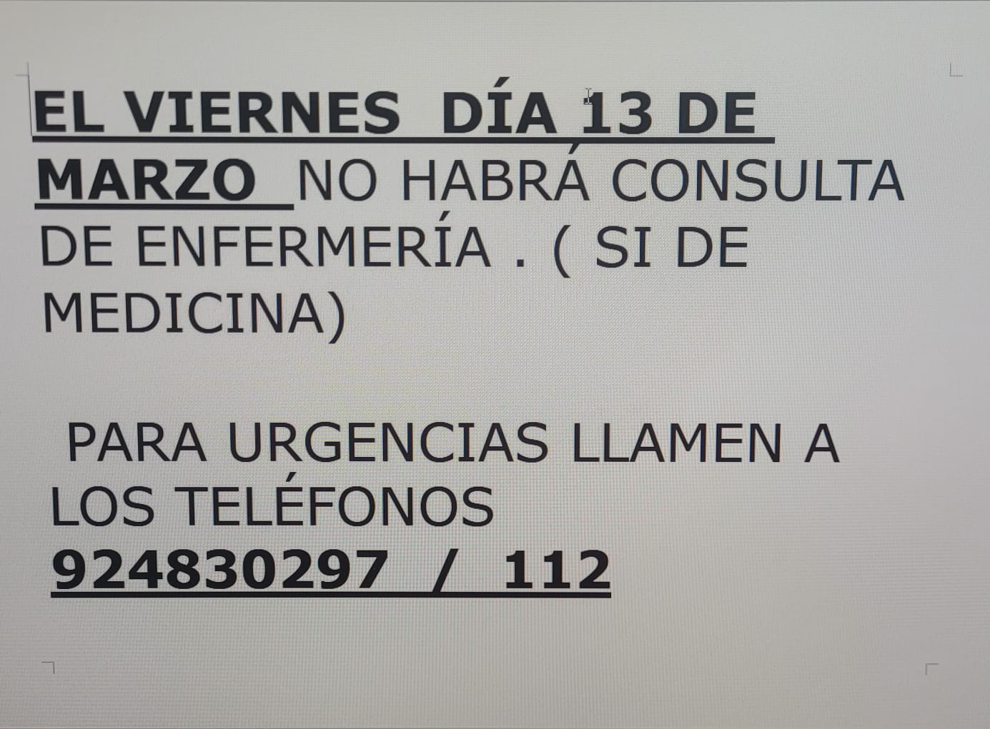 Nos informan desde el Centro de Salud que, durante toda la semana se va a llevar a cabo una Huelga Nacional de Médicos por lo que las urgencias se atenderán en el ambulatorio de Santa Amalia.