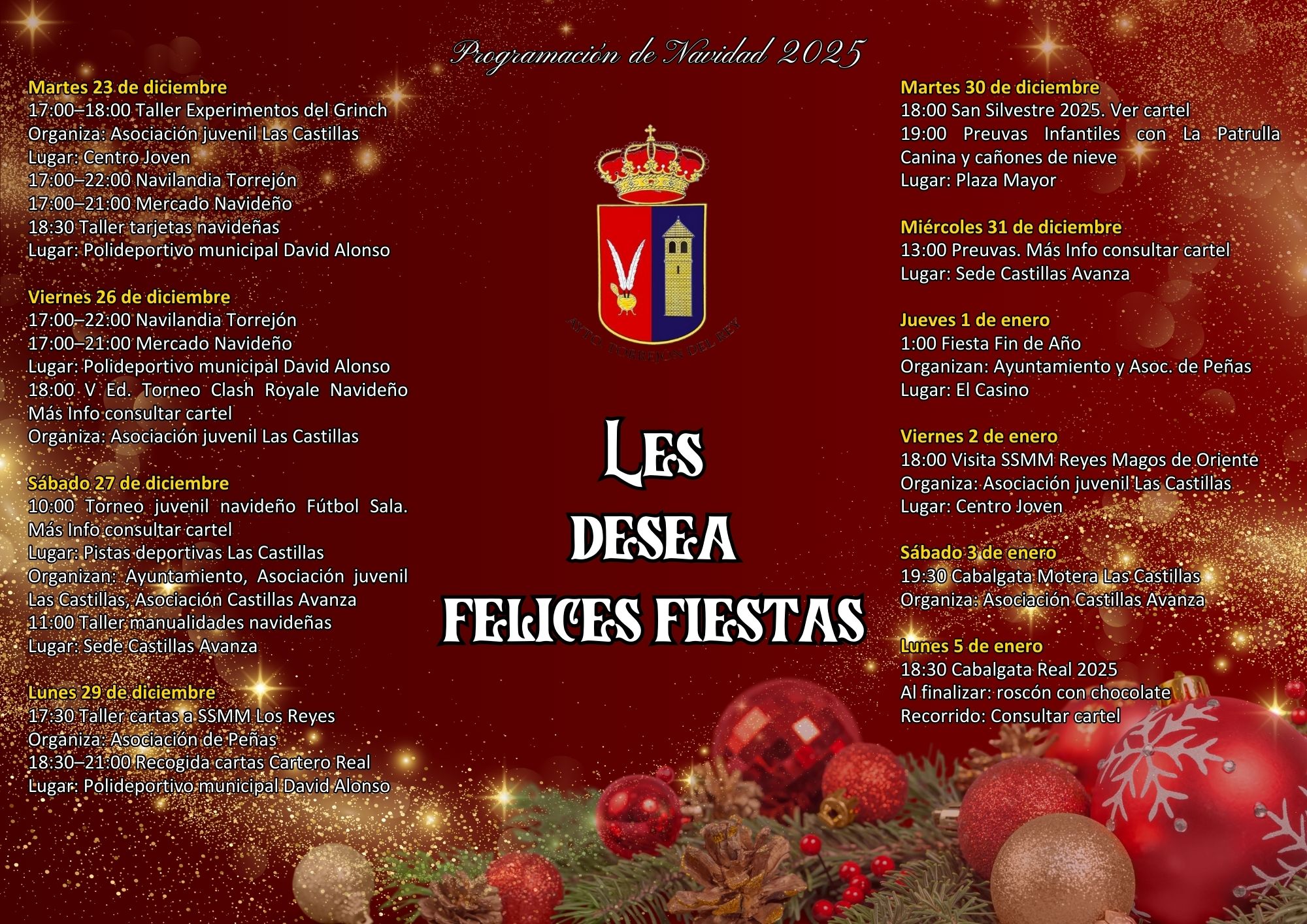 ¡Ya está aquí nuestra programación navideña! Talleres, música, Navilandia, mercadillo, Papá Noel, actividades juveniles, concursos, gymkanas, excursiones, festivales, San Silvestre, visitas de SSMM los Reyes Magos y la gran Cabalgata Real 2025 🎅🎁✨