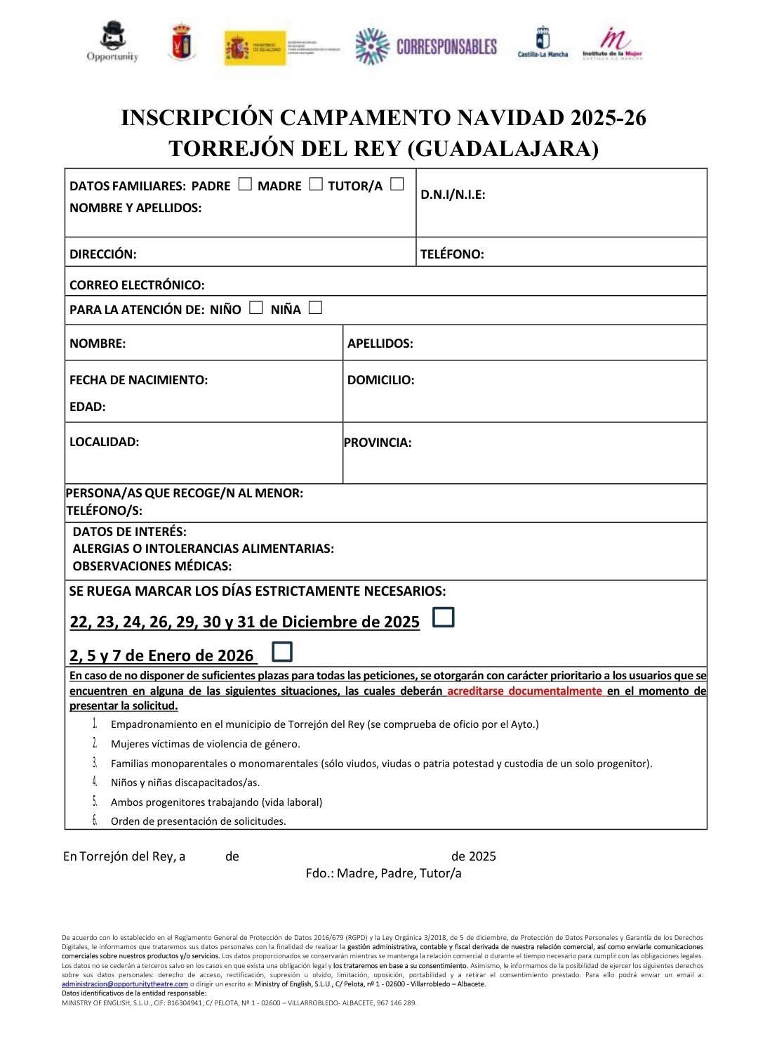 📝 Plazo de inscripción: del 24 de noviembre al 1 de diciembre
