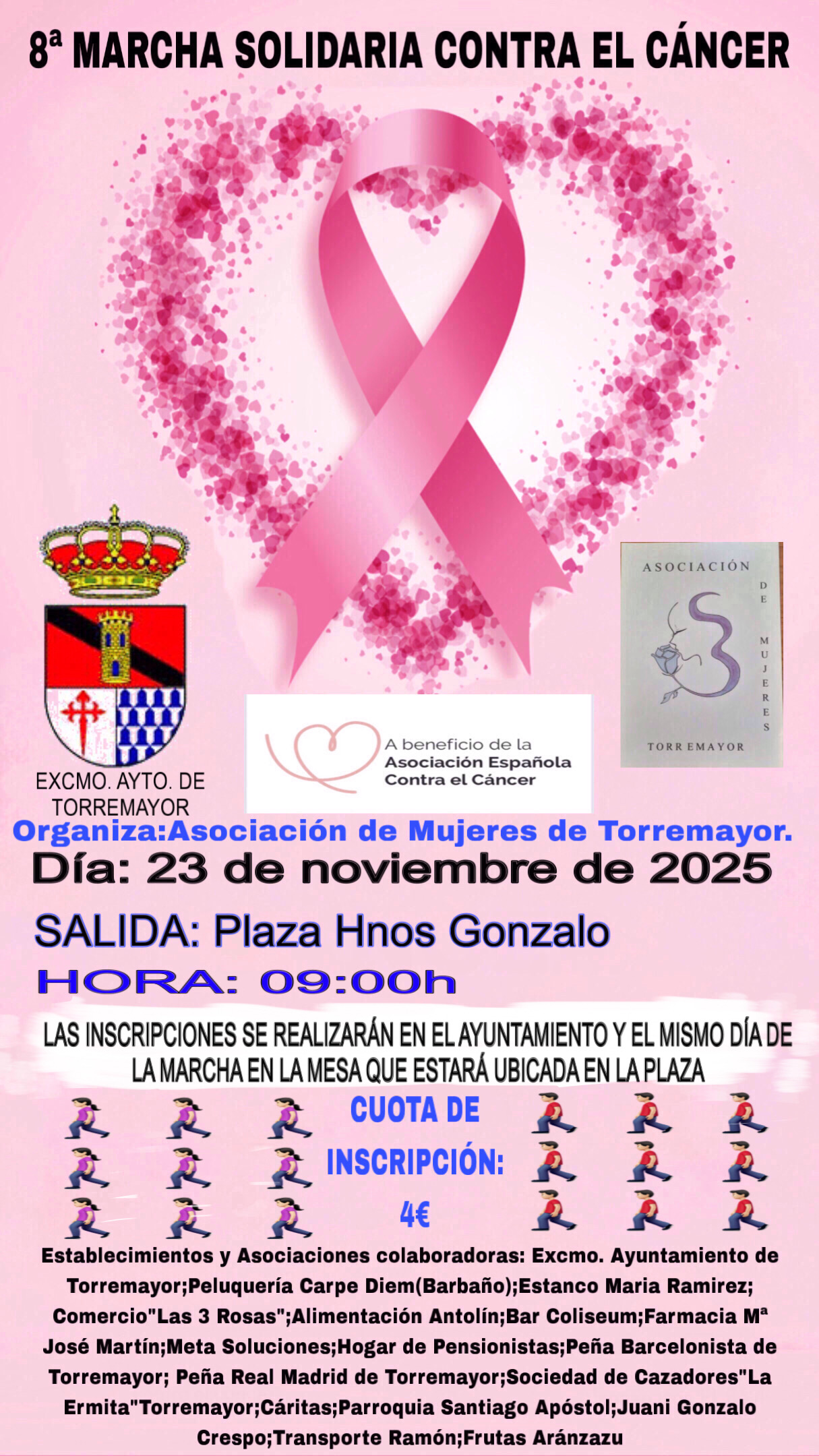 SE INFORMA A TODOS/AS LAS PERSONAS QUE QUIERAN PARTICIPAR, QUE A PARTIR DEL JUEVES 2 DE OCTUBRE, SE ABRE EL PLAZO PARA INSCRIBIRSE A LA 8ª MARCHA SOLIDARIA CONTRA EL CANCER QUE SE CELEBRARÁ EL DÍA 23 DE NOVIEMBRE DE 2025.