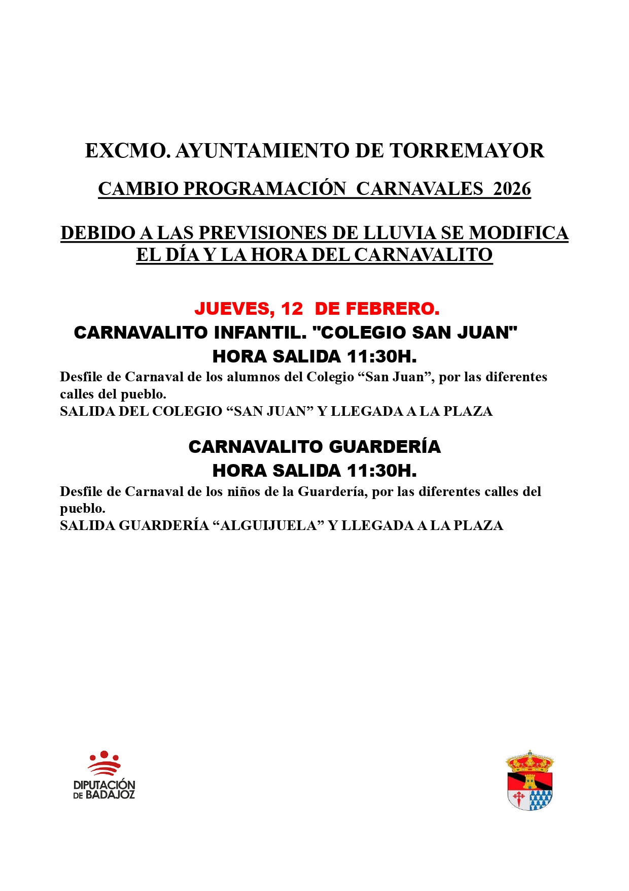 CAMBIO DE DIA Y HORA DEL CARNAVALITO DEBIDO A LAS PREVISIONES DE LLUVIA