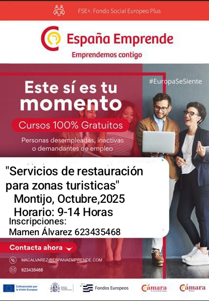 Se envían los carteles de dos cursos gratuitos que forman parte del programa llamado España emprende, destinado a desempleados y ocupados en mejora de empleo con edades