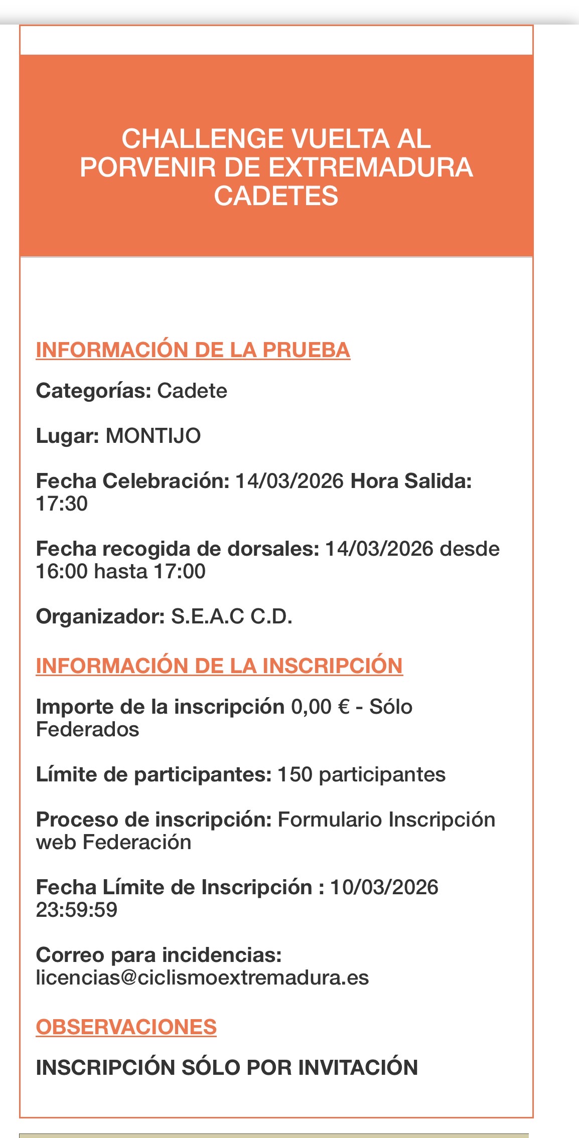CHALLENGUE VUELTA AL PORVENIR DE EXTREMADURA CADETES