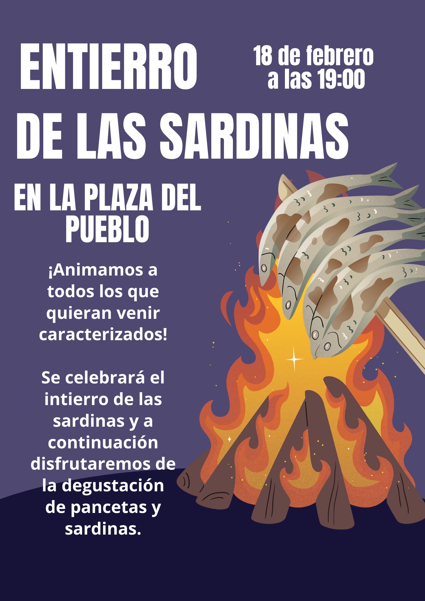 El miércoles día 18 de febrero se celebrará el entierro de la sardina en la Plaza del pueblo a las 7 de la tarde.