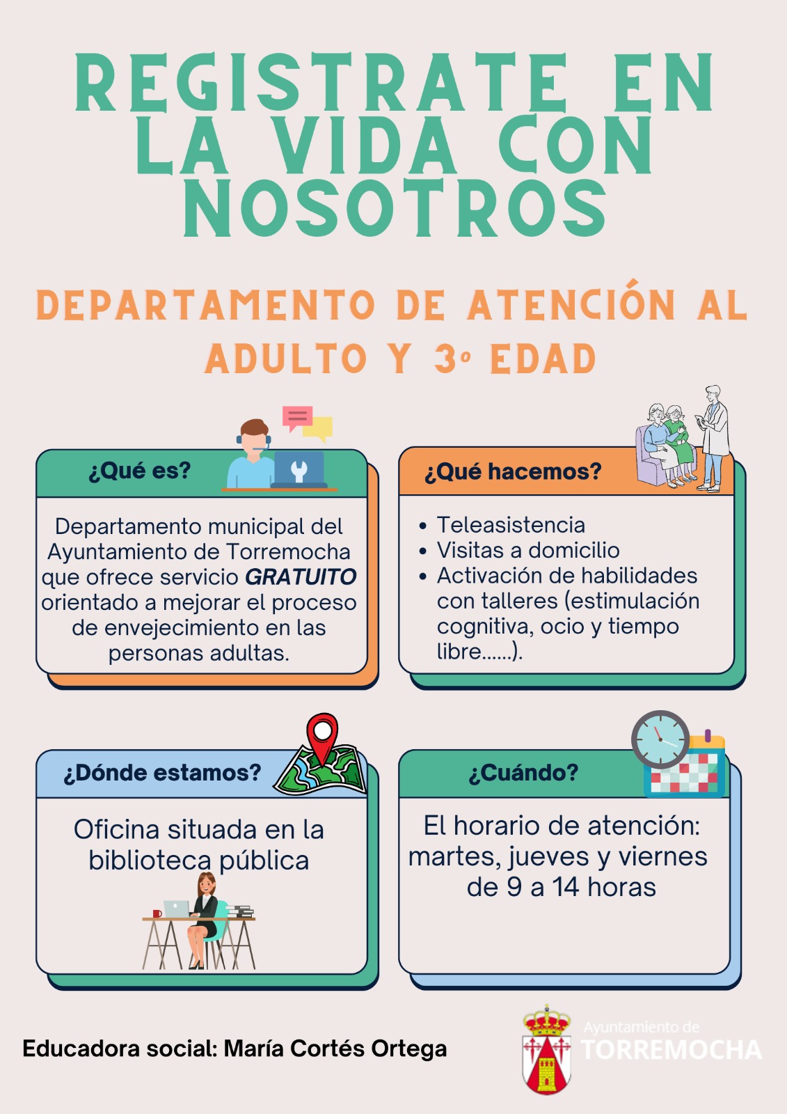 Se informa a la ciudadanía que el servicio del Departamento de Atención al Adulto y a la Tercera Edad de Torremocha se ha reanudado hoy. Tras un periodo de interrupción, se retoman las actividades y prestaciones habituales con el objetivo de seguir ofreciendo apoyo, acompañamiento y recursos a las personas mayores y adultas del municipio, garantizando su bienestar y calidad de vida.