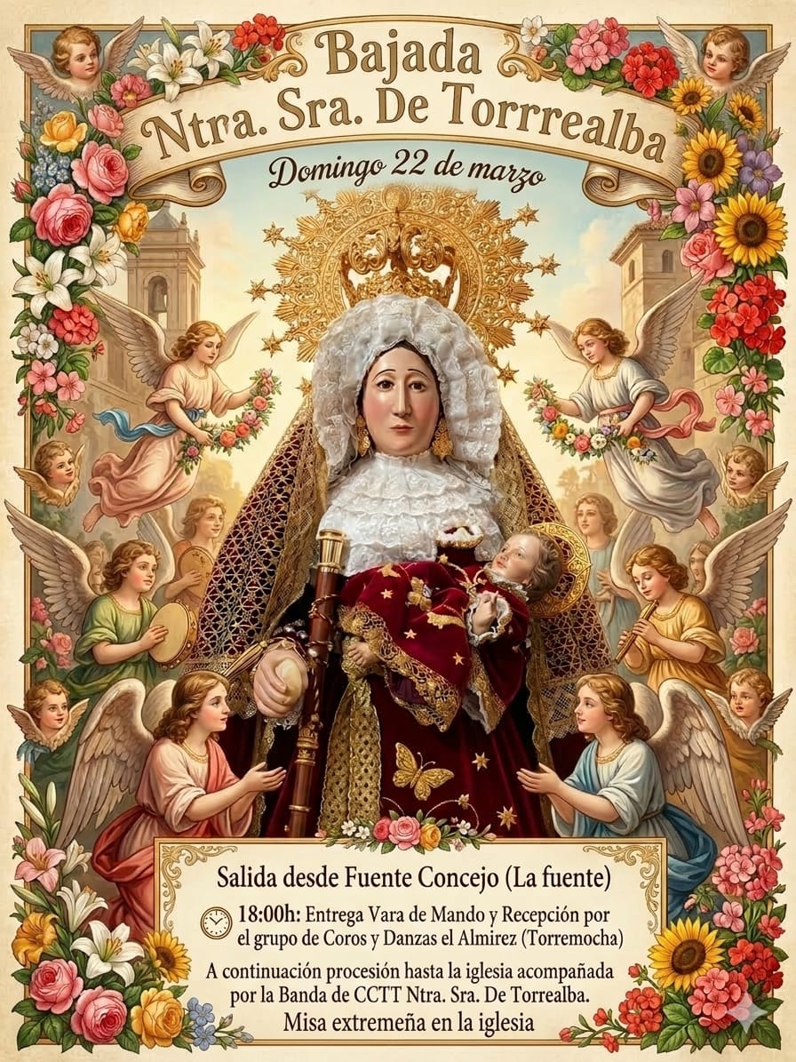 Se informa que, la plaza permanecerá cerrada al tráfico desde las 14 h hasta la finalización de la bajada de la Virgen de Torrealba.