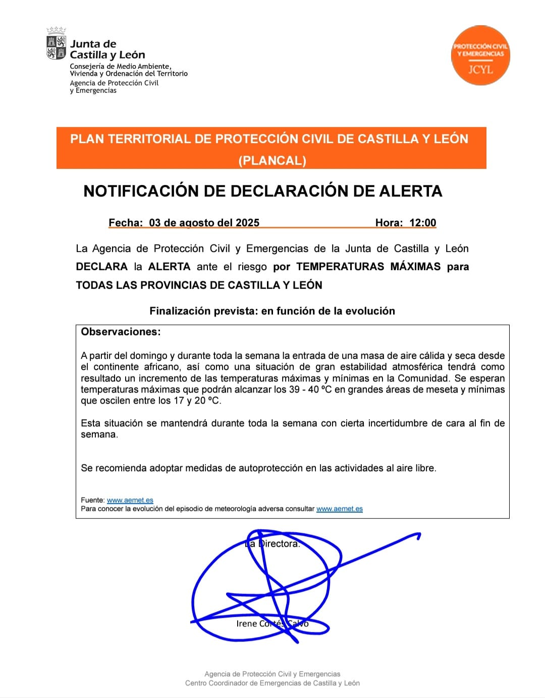 🔸Domingo 3 Muy Alto en toda la provincia y Extremo en las comarcas de Navafría, Riaza, Cantalejo y Boceguillas