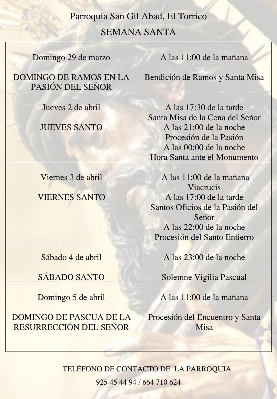 Horario y afecciones:- Inicio: desde por la mañana.