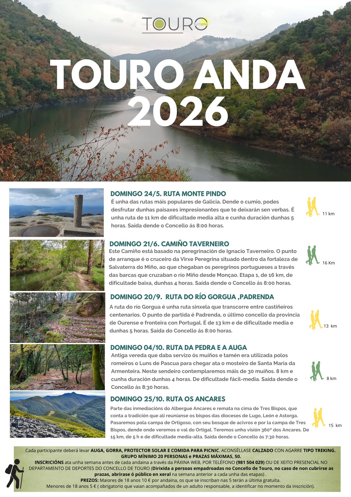 Un ano máis, o Concello de Touro promove o programa 'Touro Anda' que inclúe cinco andainas por distintas e fermosas zonas de Galicia