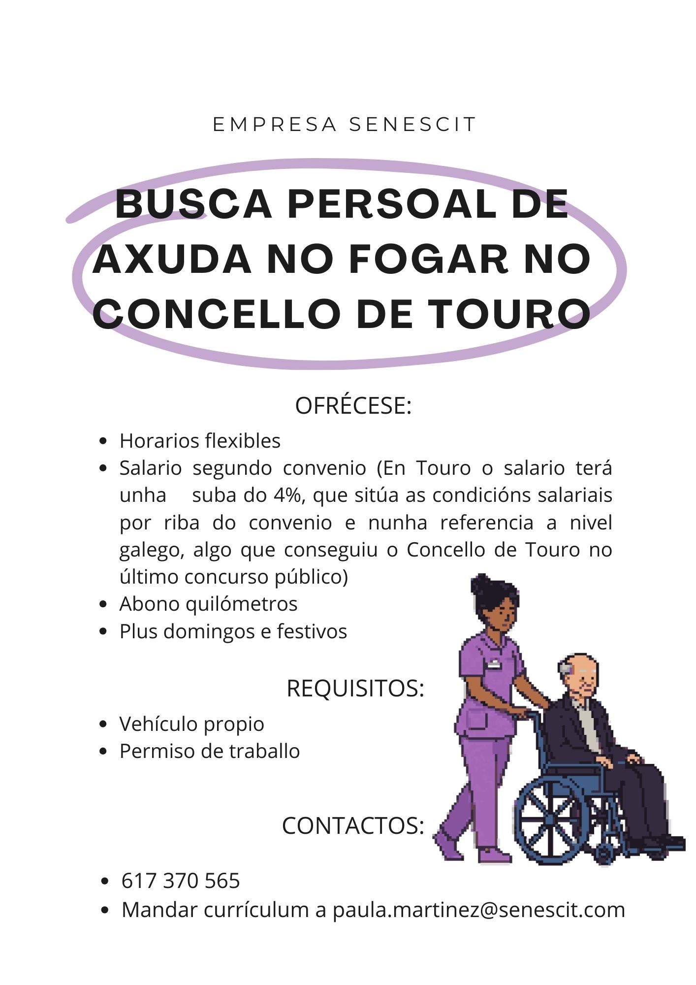 BÚSCASE PERSOAL DE AXUDA NO FOGAR PARA O CONCELLO DE TOURO